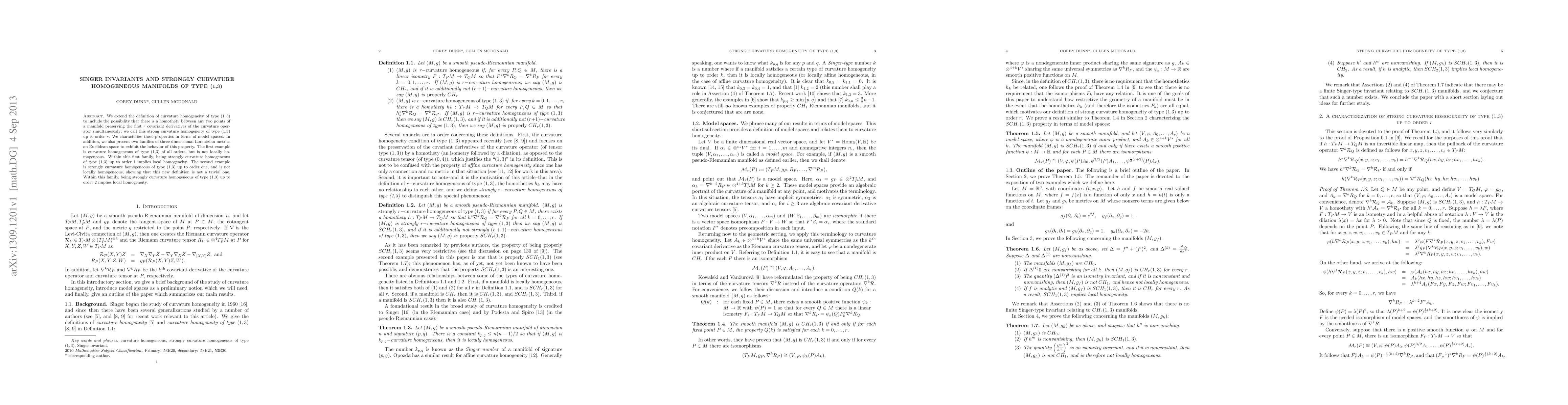 We extend the definition of curvature homogeneity of type (1,3) to include the possibility that there is a homothety between any two points of a manifold preserving the first r covariant derivatives of the curvature operator simultaneously; we call this strong curvature homogeneity of type (1,3) up to order r. We characterize these properties in terms of model spaces. In addition, we also present two families of three-dimensional Lorentzian metrics on Euclidean space to exhibit the behavior of this property. The first example is curvature homogeneous of type (1,3) of all orders, but is not locally homogeneous. Within this first family, being strongly curvature homogeneous of type (1,3) up to order 1 implies local homogeneity. The second example is strongly curvature homogeneous of type (1,3) up to order one, and is not locally homogeneous, showing that this new definition is not a trivial one. Within this family, being strongly curvature homogeneous of type (1,3) up to order 2 implies local homogeneity.