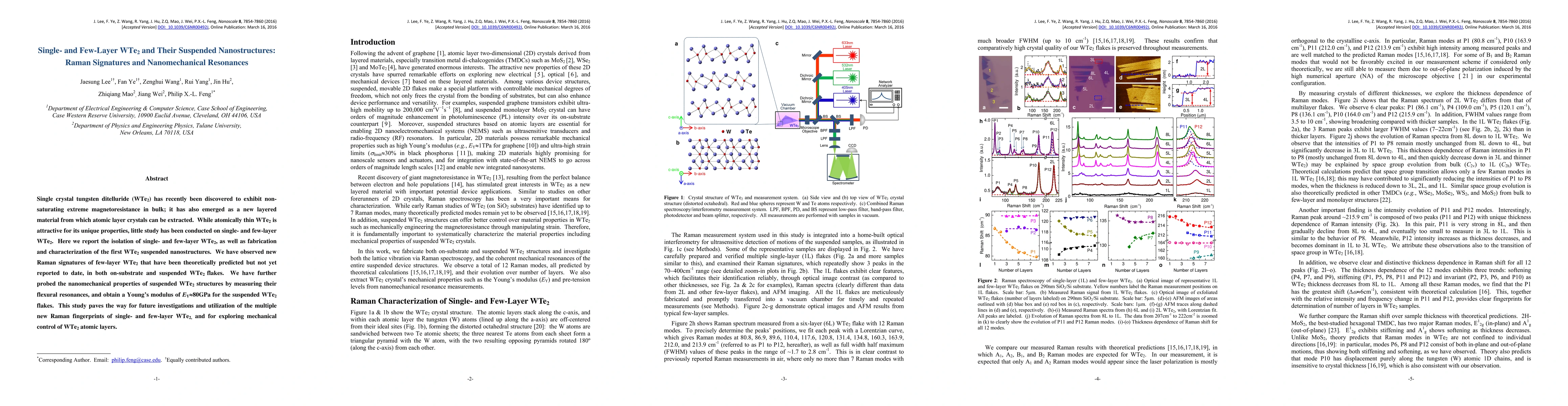 This paper reports on the isolation and characterization of single- and few-layer WTe2 nanostructures, revealing new Raman signatures and a Young's modulus of ~80GPa for suspended flakes, highlighting their potential for future applications.