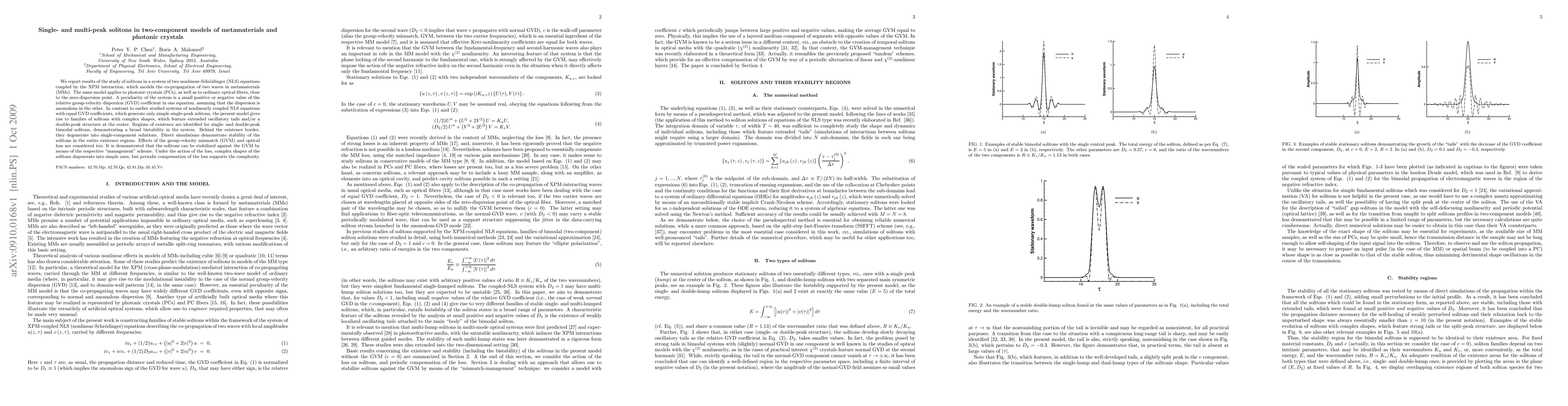 The research investigates solitons in a system of two nonlinear-Schrodinger equations coupled by the cross-phase modulation interaction, applicable to metamaterials, photonic crystals, and optical fibers near the zero-dispersion point. Unlike previous models with equal group-velocity dispersion coefficients, this model generates complex solitons with extended oscillatory tails or double-peak structures. The study identifies existence regions for single- and double-peak bimodal solitons, demonstrating broad bistability, and confirms their stability. The effects of group-velocity mismatch and optical loss are also explored, showing that solitons can be stabilized against group-velocity mismatch and that loss can be periodically compensated to maintain soliton complexity.