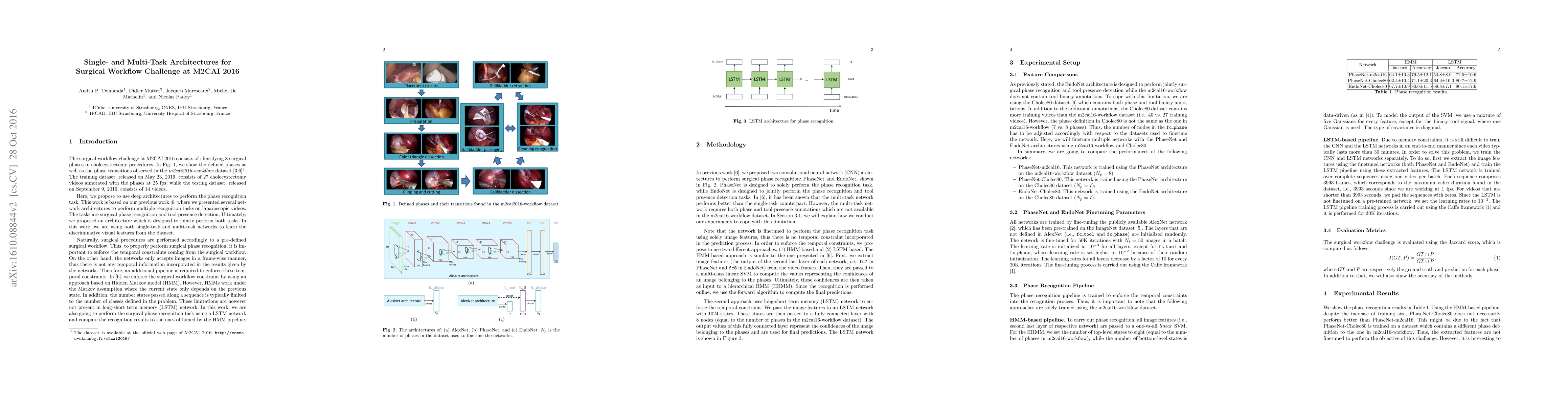 This paper presents deep architectures for recognizing surgical phases in cholecystectomy procedures, comparing single-task and multi-task models, and evaluating HMM-based and LSTM-based approaches for enforcing temporal constraints. The LSTM-based model outperforms the HMM-based one, demonstrating better performance in phase recognition.
