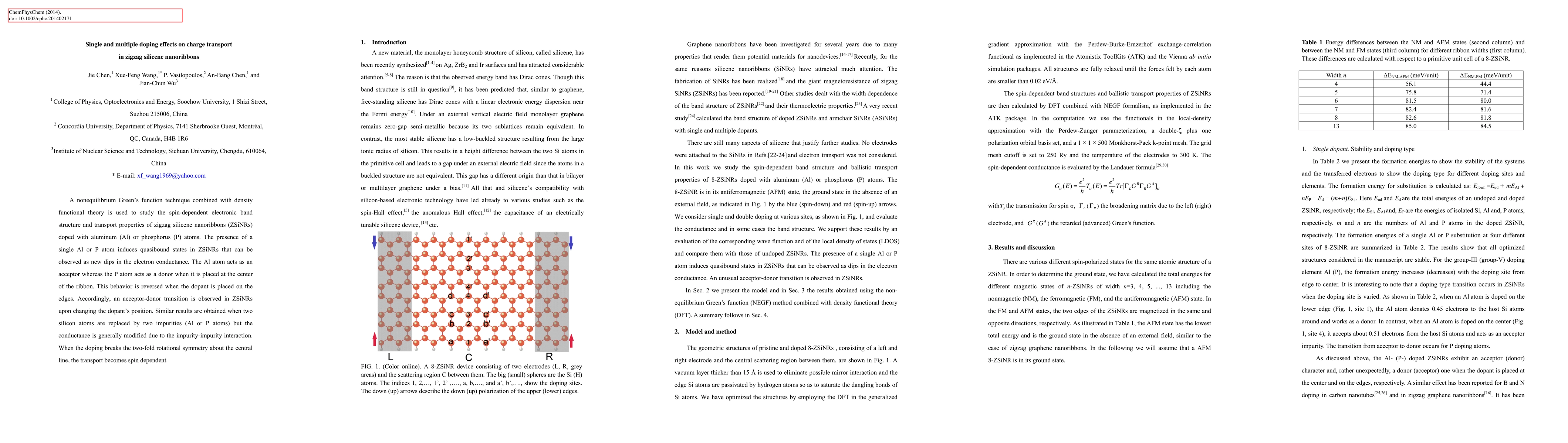 This study investigates the impact of single and multiple doping with aluminum or phosphorus on the electron transport in zigzag silicene nanoribbons using nonequilibrium Green's function and density functional theory. Single dopants induce quasibound states and alter transport properties based on their position, while multiple doping affects conductance due to impurity-impurity interactions, leading to spin-dependent transport when symmetry is broken.