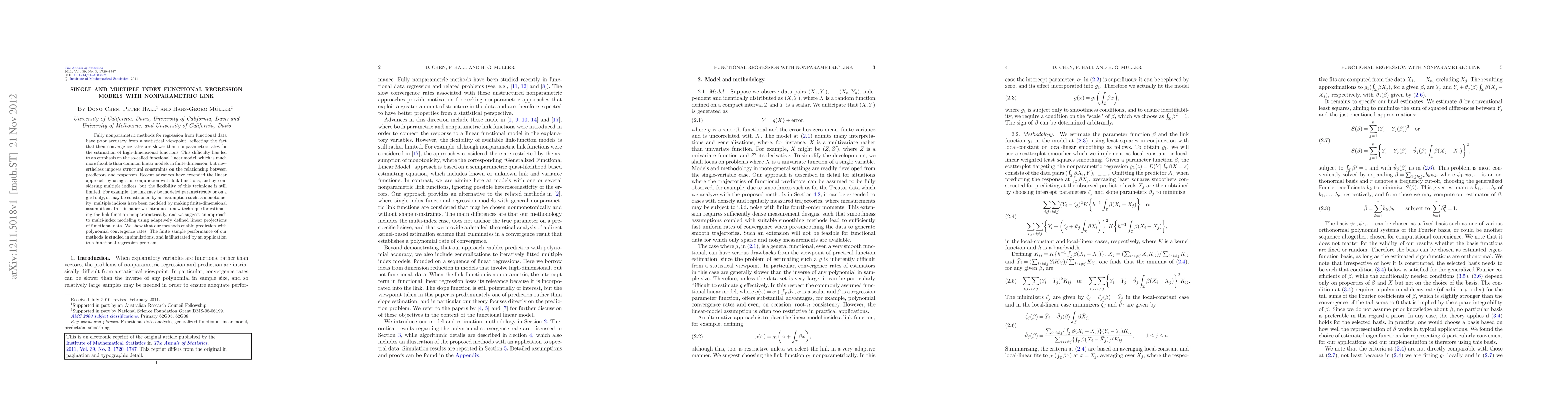 This paper proposes new nonparametric techniques for single and multiple index functional regression models, enabling polynomial convergence rates and overcoming the limitations of previous methods that rely on parametric or grid-based link functions and finite-dimensional assumptions for multiple indices. The effectiveness of the methods is demonstrated through simulations and a practical application.