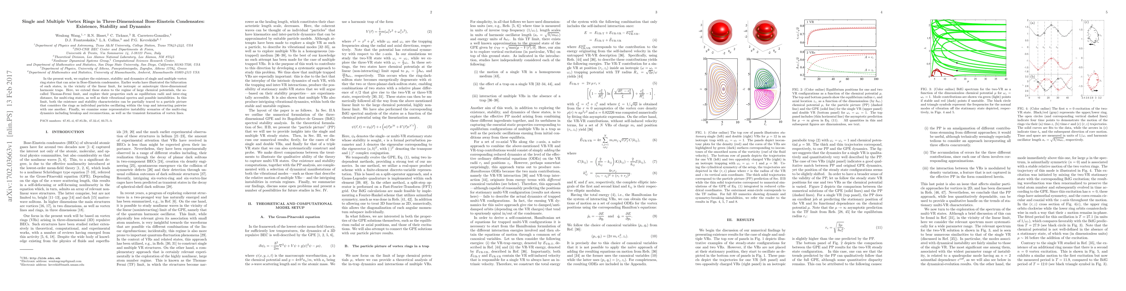 This paper investigates the existence, stability, and dynamics of single and multiple vortex rings in three-dimensional Bose-Einstein condensates, extending previous studies to large chemical potentials. It examines equilibrium properties and instabilities, including breakup and reconnection scenarios, in the Thomas-Fermi limit.