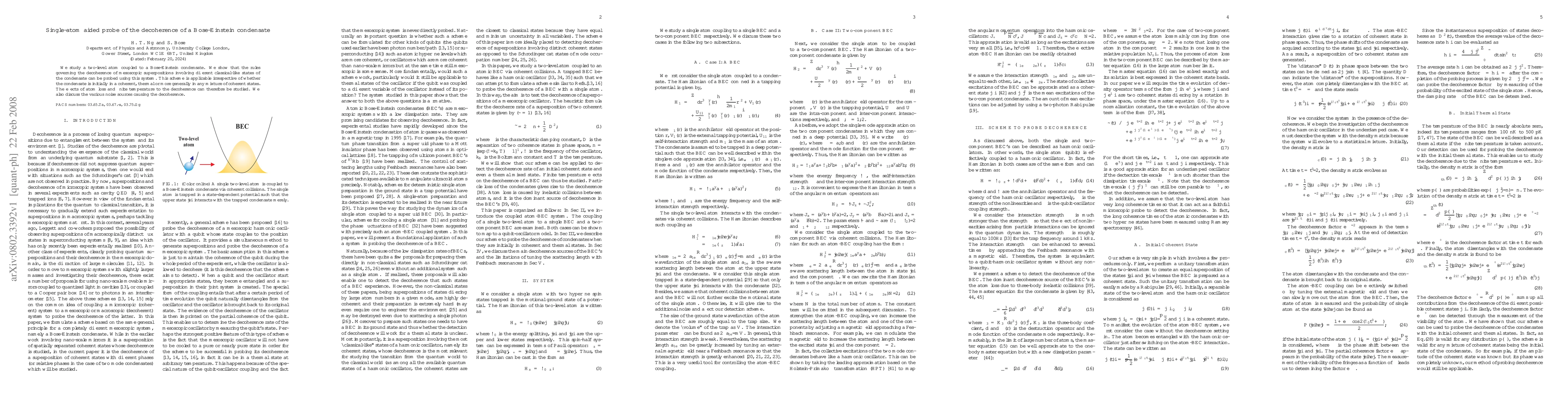 This research investigates the decoherence of a Bose-Einstein condensate using a coupled two-level atom, demonstrating that this system can probe the rules governing decoherence in mesoscopic superpositions. The study covers various initial states of the condensate and discusses noise sources and effects of atom loss and finite temperature on decoherence.