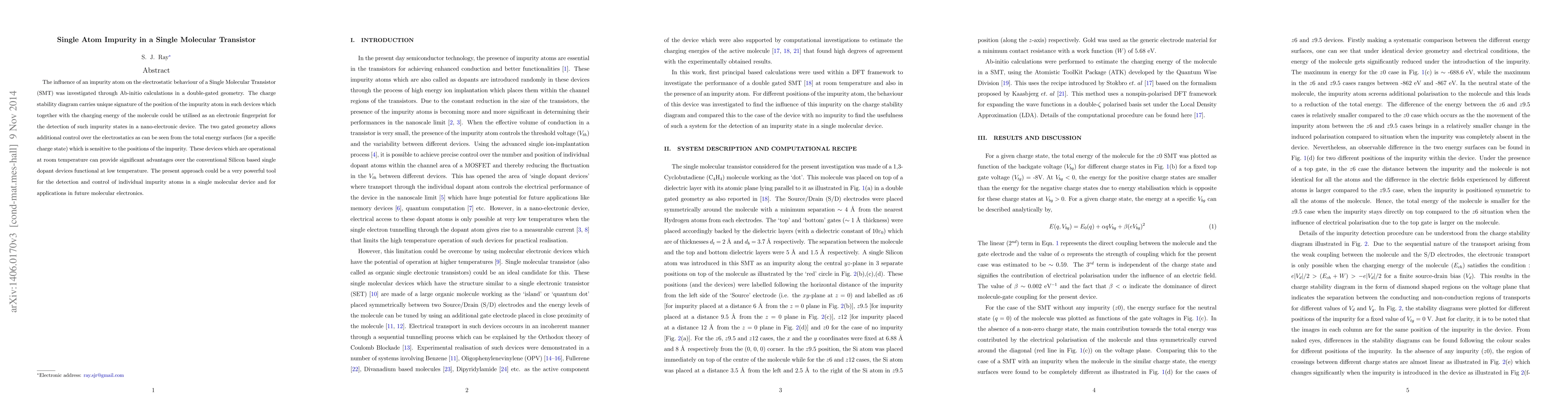 This paper investigates the impact of a single atom impurity on the electrostatic behavior of a Single Molecular Transistor using Ab-initio calculations. The study reveals that the impurity's position and charging energy can serve as an electronic fingerprint, offering potential for detecting impurity states in nano-electronic devices.