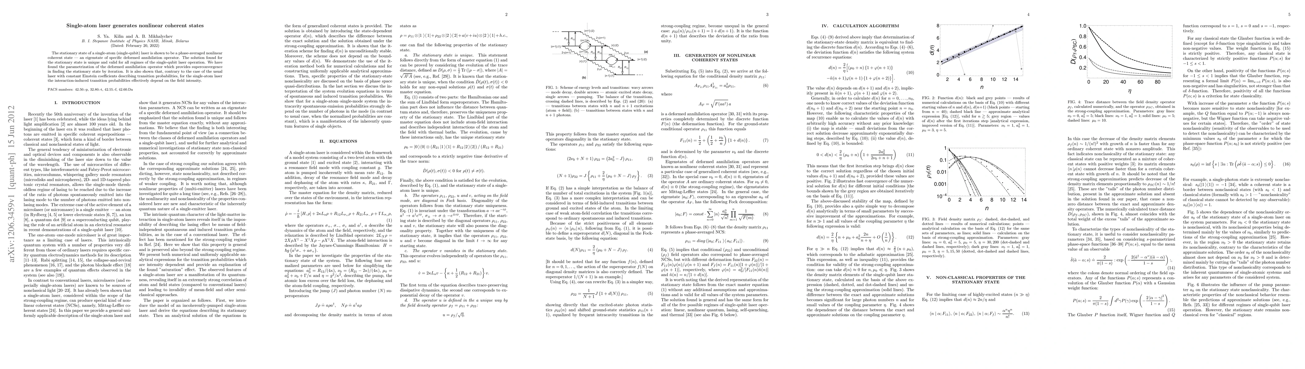 This paper demonstrates that the stationary state of a single-atom laser is a phase-averaged nonlinear coherent state, unique across all operational regimes. The study introduces a deformed annihilation operator for superconvergent iteration and reveals that the transition probabilities in this system depend on the field intensity, unlike conventional lasers.