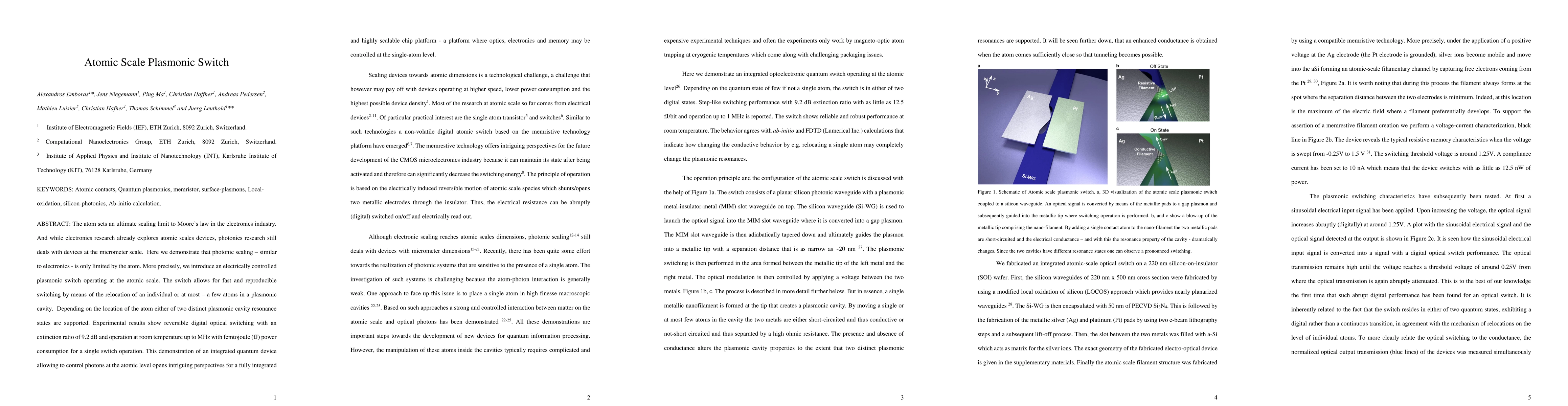 The paper introduces an electrically controlled single-atom plasmonic switch that enables fast and reproducible switching by relocating individual or a few atoms in a plasmonic cavity, demonstrating control of photons at the single-atom level.