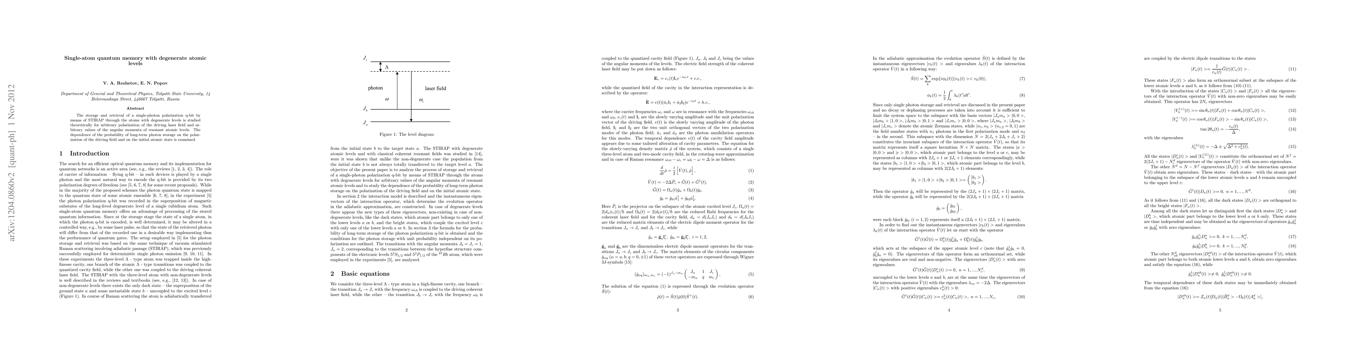 This paper theoretically explores a single-atom quantum memory using STIRAP with degenerate atomic levels to store and retrieve single-photon polarization qubits. The study investigates the impact of the driving laser's polarization and atomic level angular momenta on the probability of long-term photon storage.