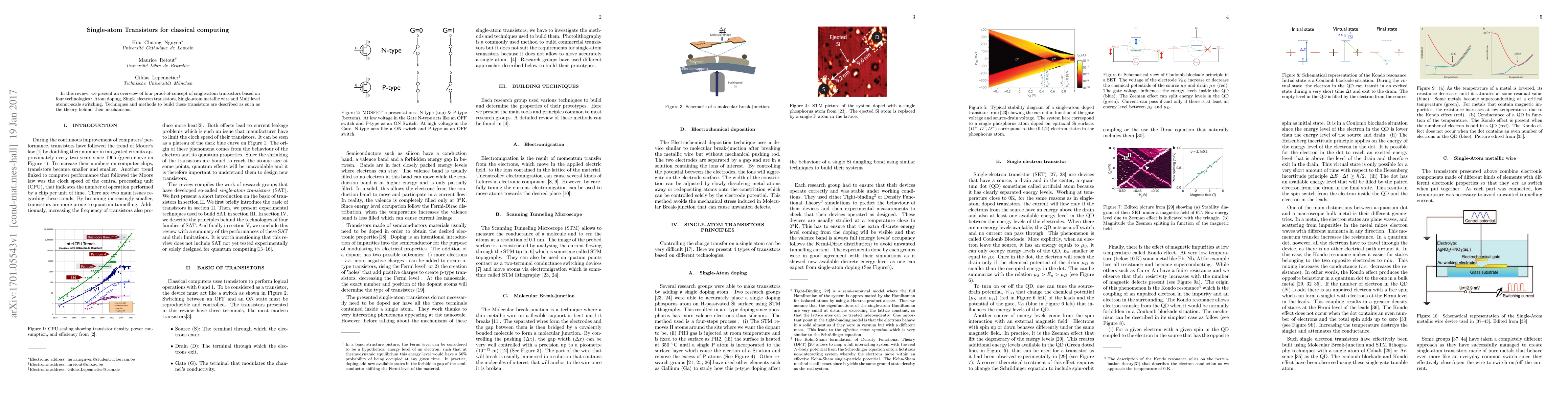 This paper reviews four proof-of-concept technologies for single-atom transistors, including atom doping, single electron transistors, single-atom metallic wires, and multilevel atomic-scale switching, detailing their construction methods and underlying theoretical mechanisms.