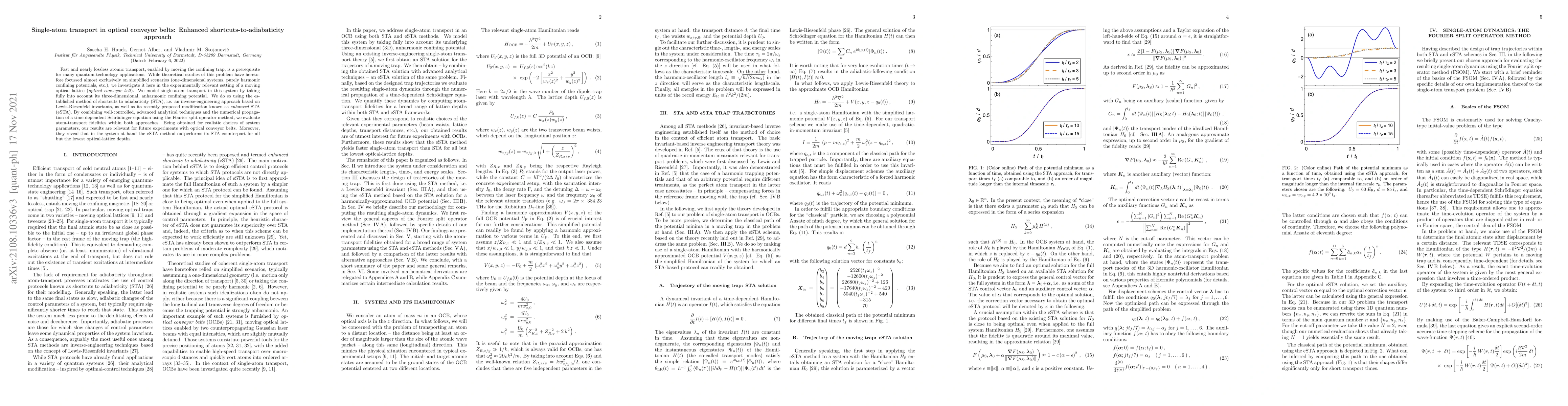 This paper investigates single-atom transport in optical conveyor belts using the enhanced shortcuts-to-adiabaticity (eSTA) approach, demonstrating its superior performance over traditional STA methods for realistic system parameters, thus offering valuable insights for future quantum-technology experiments.