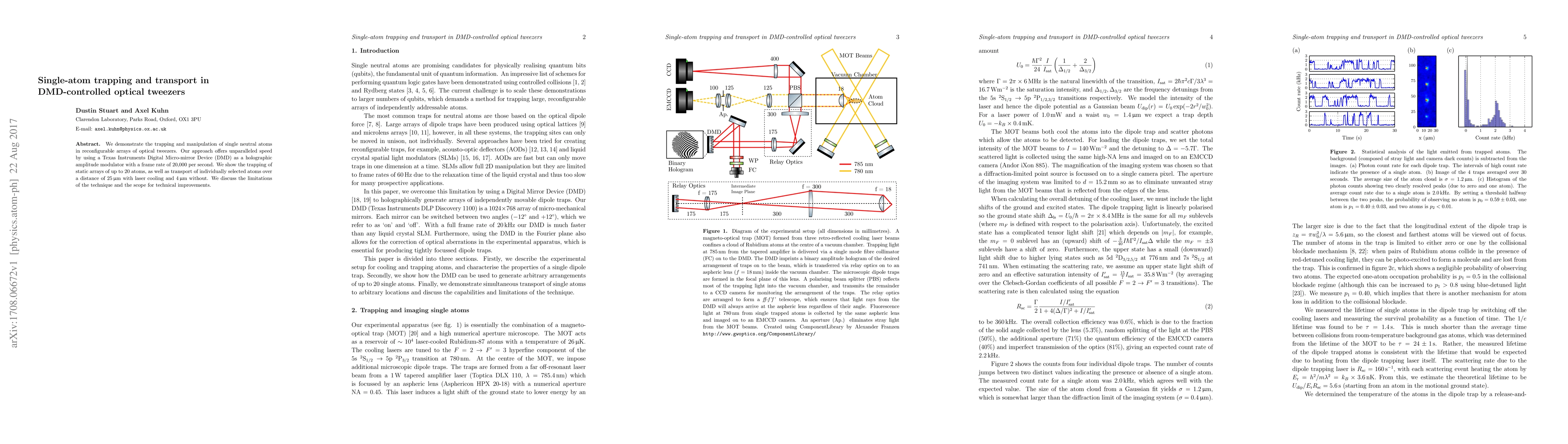 The paper introduces a DMD-controlled holographic technique for generating and manipulating optical tweezers, enabling fast reconfiguration and precise control of single-atom traps.