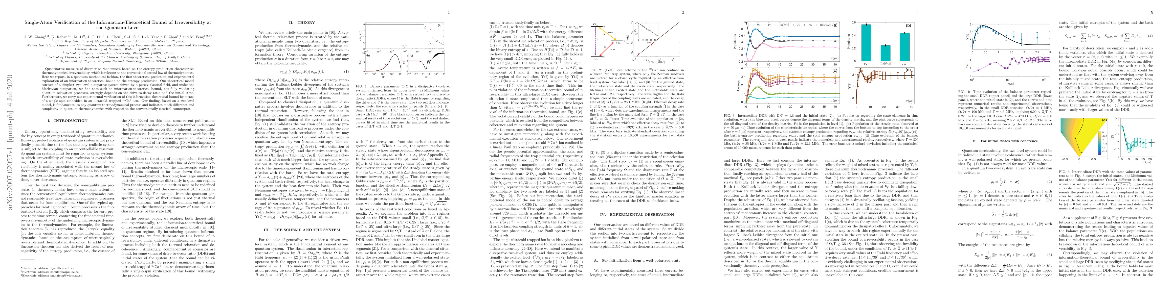 Quantitative measure of disorder or randomness based on the entropy production characterizes thermodynamical irreversibility, which is relevant to the conventional second law of thermodynamics. Here we report, in a quantum mechanical fashion, the first theoretical prediction and experimental exploration of an information-theoretical bound on the entropy production. Our theoretical model consists of a simplest two-level dissipative system driven by a purely classical field, and under the Markovian dissipation, we find that such an information-theoretical bound, not fully validating quantum relaxation processes, strongly depends on the drive-to-decay ratio and the initial state. Furthermore, we carry out experimental verification of this information-theoretical bound by means of a single spin embedded in an ultracold trapped $^{40}$Ca$^{+}$ ion. Our finding, based on a two-level model, is fundamental to any quantum thermodynamical process and indicates much difference and complexity in quantum thermodynamics with respect to the conventionally classical counterpart.