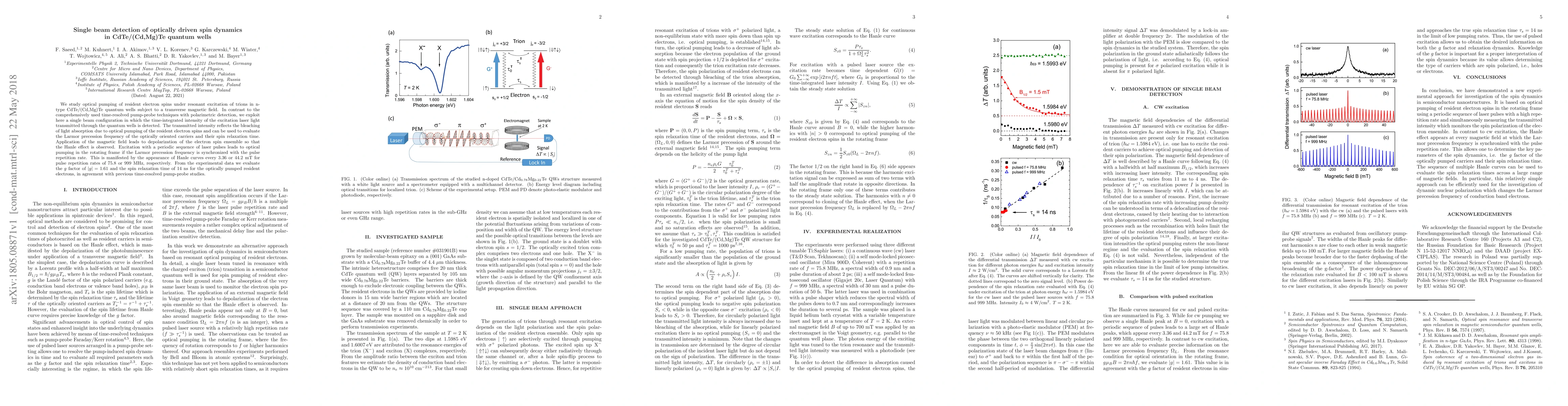 Researchers study spin dynamics in quantum wells using a single beam configuration to detect optical pumping, revealing the Larmor precession frequency and spin relaxation time of optically oriented carriers.