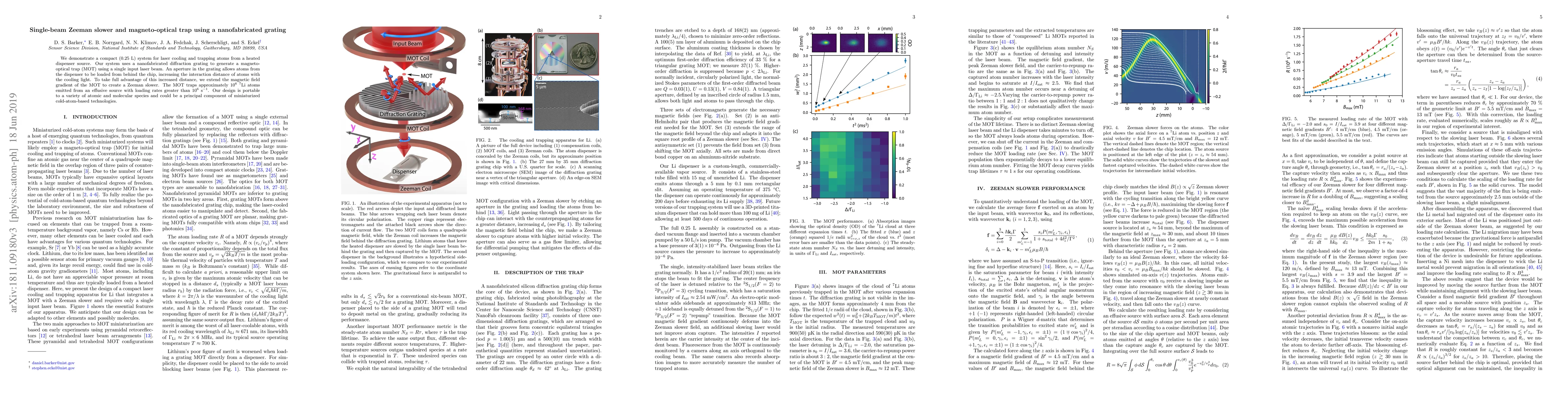 This paper details a compact atom cooling system using a nanofabricated grating to create a magneto-optical trap and Zeeman slower from a single laser beam, achieving high loading rates for lithium atoms and showing potential for miniaturized cold-atom technologies.