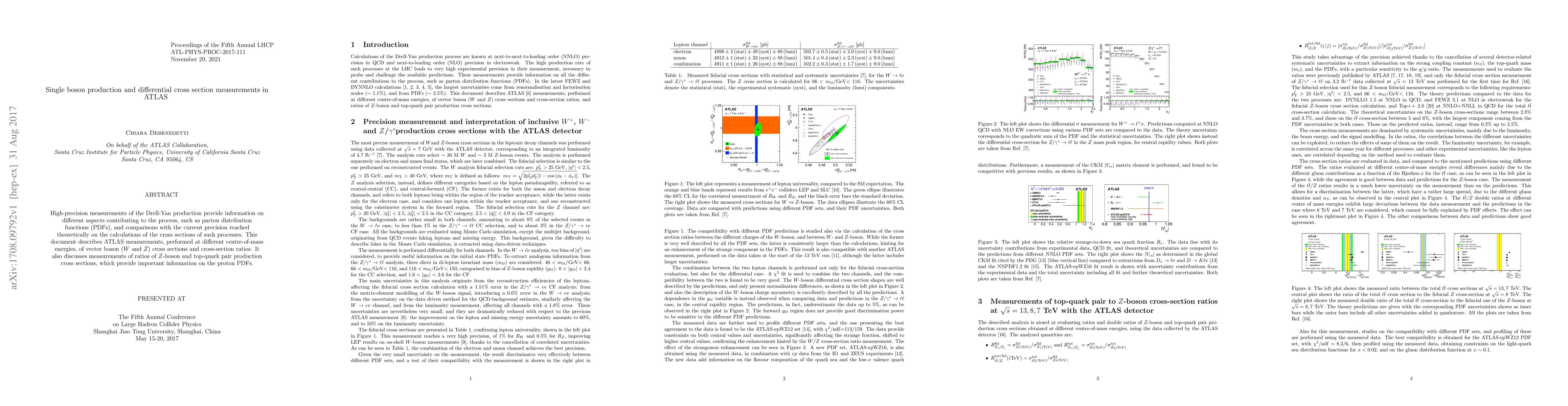 This paper reports high-precision measurements by ATLAS of Drell-Yan single boson production, including W and Z cross sections, and their ratios, providing insights into parton distribution functions and cross-section calculations. It also examines ratios of Z-boson and top-quark pair production to further understand proton PDFs.