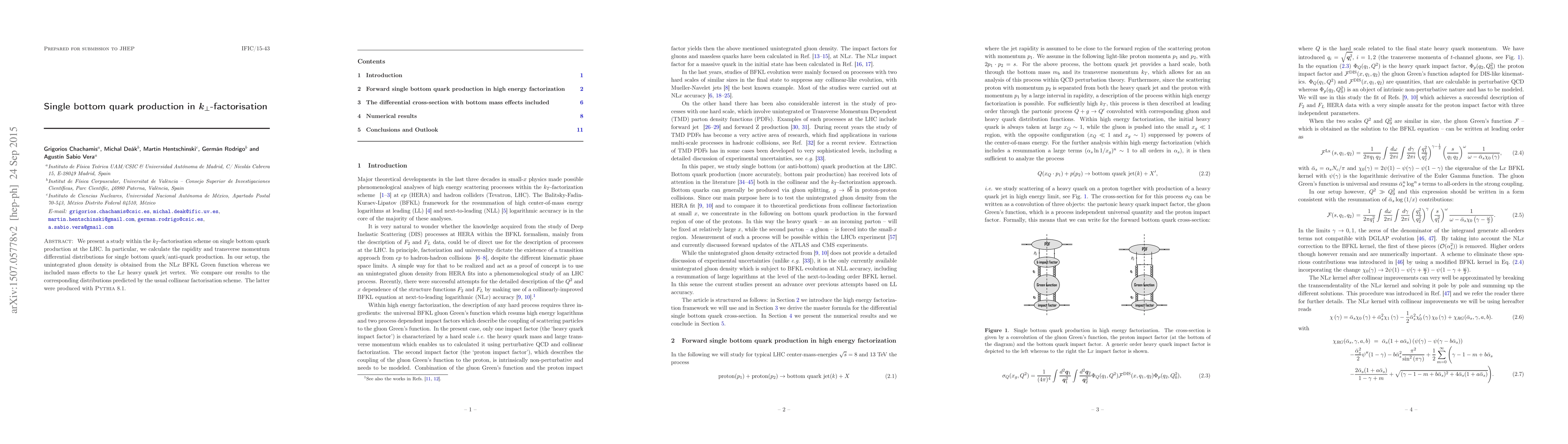 We present a study within the kT-factorisation scheme on single bottom quark production at the LHC. In particular, we calculate the rapidity and transverse momentum differential distributions for single bottom quark/anti-quark production. In our setup, the unintegrated gluon density is obtained from the NLx BFKL Green function whereas we included mass effects to the Lx heavy quark jet vertex. We compare our results to the corresponding distributions predicted by the usual collinear factorisation scheme. The latter were produced with Pythia 8.1.
