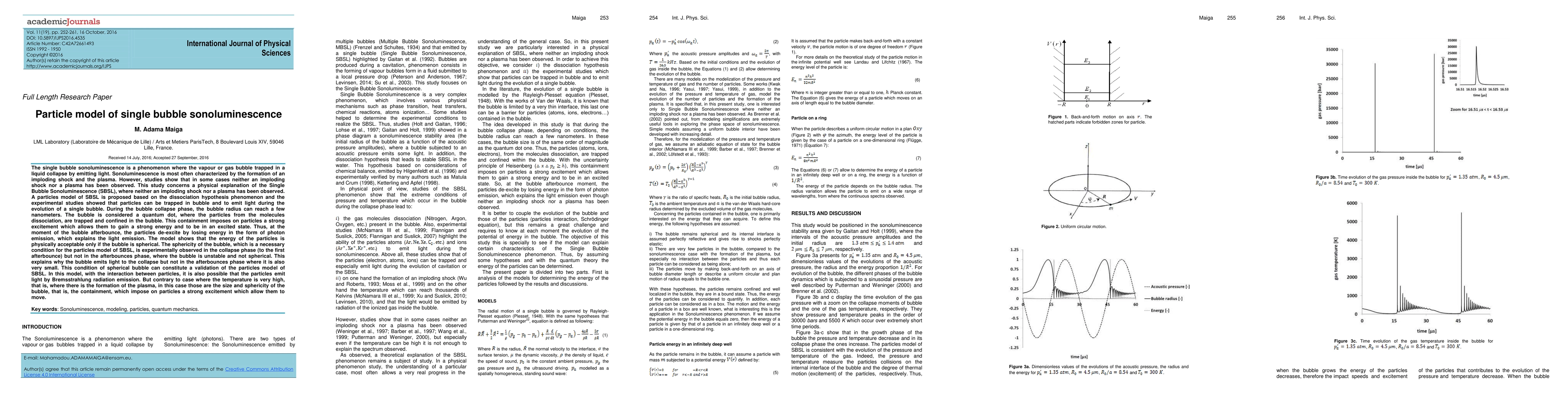 This study explores the Single Bubble SonoLuminescence phenomenon, where collapsing vapor bubbles emit light due to ionized gas radiation. The research proposes a model where free particles within the bubble acquire energy during collapse, emitting light as they lose energy, akin to electrons bound to an atom. The model validates the spherical bubble condition during collapse but not post-collapse, explaining light emission during collapse but not in subsequent phases.