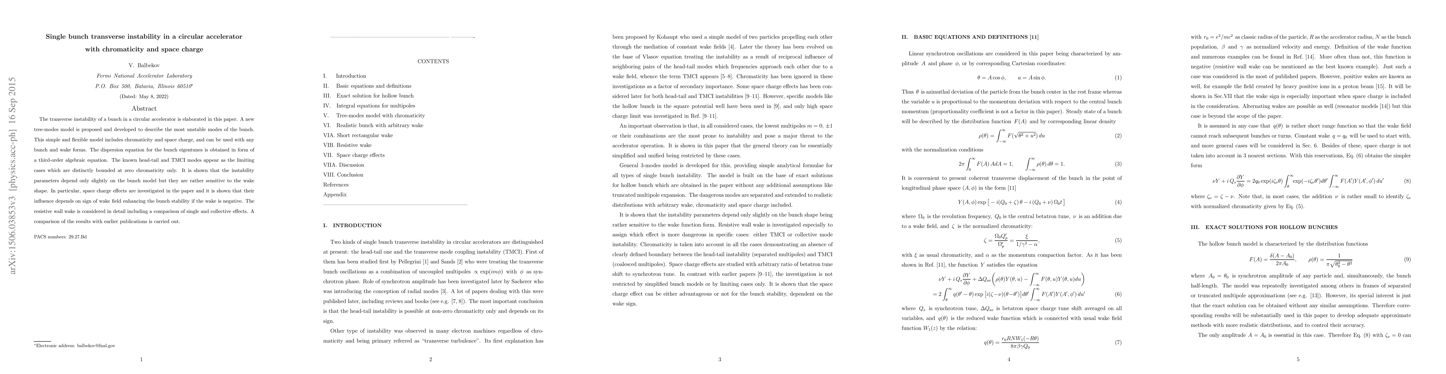 This paper proposes a new tree-modes model to describe the transverse instability of single bunches in circular accelerators, incorporating chromaticity and space charge. The model's dispersion equation reveals that instability parameters are slightly dependent on the bunch model but significantly influenced by the wake shape, particularly enhancing stability with negative wake fields.