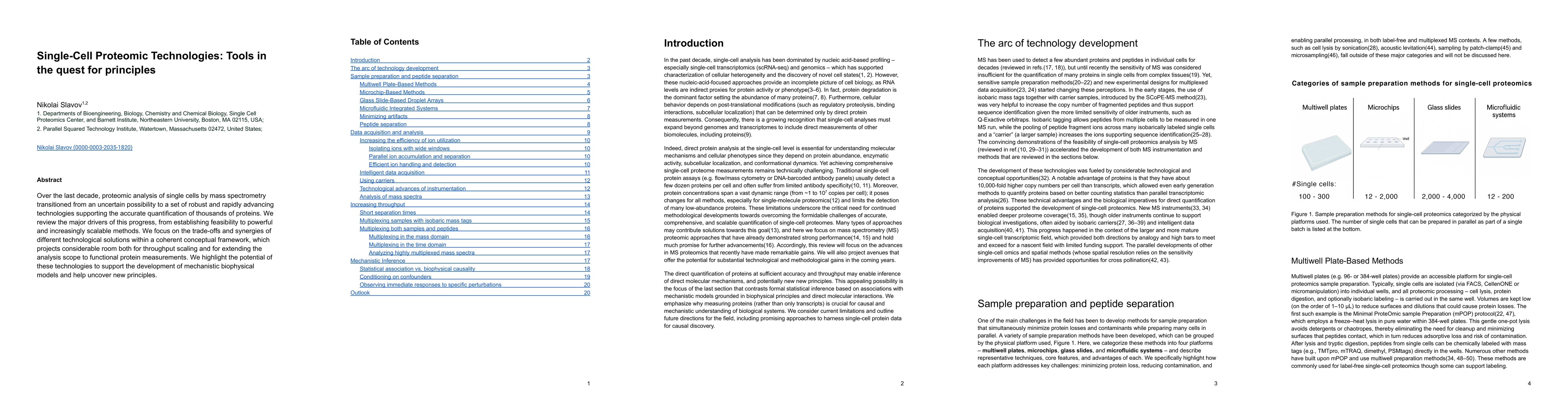 Over the last decade, proteomic analysis of single cells by mass spectrometry transitioned from an uncertain possibility to a set of robust and rapidly advancing technologies supporting the accurate quantification of thousands of proteins. We review the major drivers of this progress, from establishing feasibility to powerful and increasingly scalable methods. We focus on the tradeoffs and synergies of different technological solutions within a coherent conceptual framework, which projects considerable room both for throughput scaling and for extending the analysis scope to functional protein measurements. We highlight the potential of these technologies to support the development of mechanistic biophysical models and help uncover new principles.
