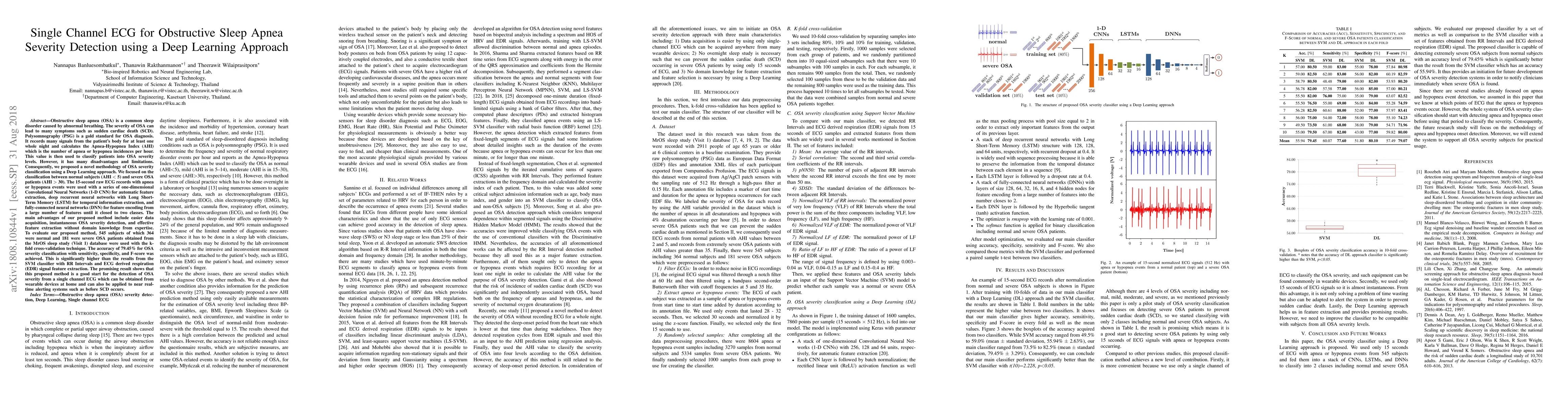 This paper proposes a deep learning approach using single-channel ECG data to classify obstructive sleep apnea (OSA) severity, achieving 79.45% accuracy. The method offers easier data acquisition and real-time detection compared to traditional polysomnography.