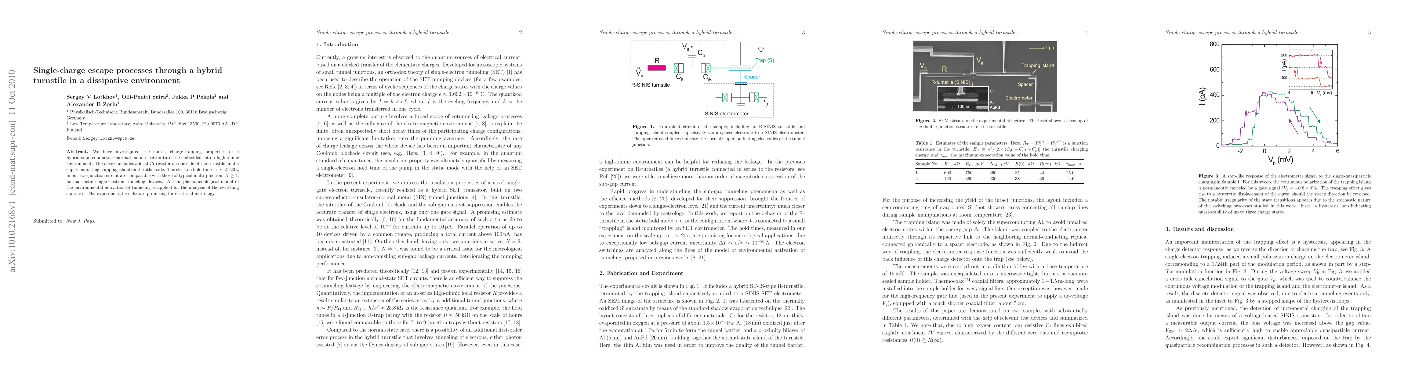 This paper investigates a hybrid superconductor-normal metal electron turnstile in a high-ohmic environment, finding comparable electron hold times to multi-junction devices. A semi-phenomenological model analyzes the switching statistics, showing potential for electrical metrology applications.