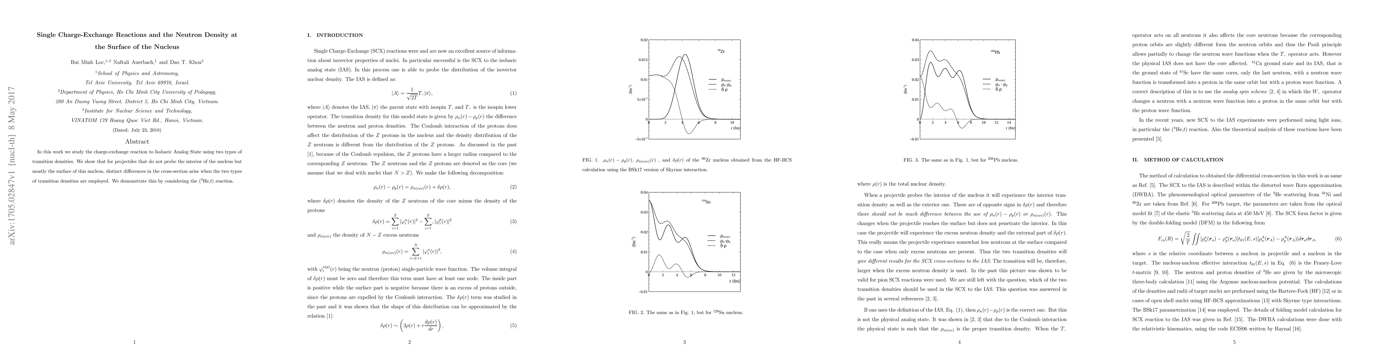 In this work we study the charge-exchange reaction to Isobaric Analog State using two types of transition densities. We show that for projectiles that do not probe the interior of the nucleus but mostly the surface of this nucleus, distinct differences in the cross-section arise when the two types of transition densities are employed. We demonstrate this by considering the (3He,t) reaction.