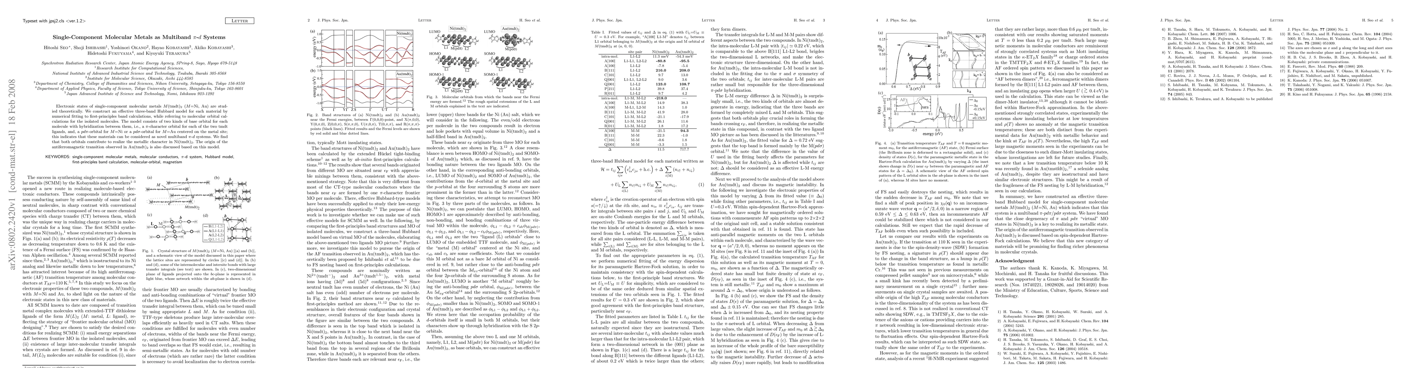 Electronic states of single-component molecular metals M(tmdt)2 (M = Ni, Au) are studied theoretically. We construct an effective three-band Hubbard model for each material by numerical fitting to first-principles band calculations, while referring to molecular orbital calculations for the isolated molecules. The model consists of two kinds of base orbital for each molecule with hybridization between them, i.e., a \pi-character orbital for each of the two tmdt ligands, and, a pd\pi-orbital for M = Ni or a pd\sigma-orbital for M = Au centered on the metal site; this indicates that these materials can be considered as novel multiband \pi-d systems. We find that both orbitals contribute to realize the metallic character in Ni(tmdt)2. The origin of the antiferromagnetic transition observed in Au(tmdt)2 is also discussed based on this model.