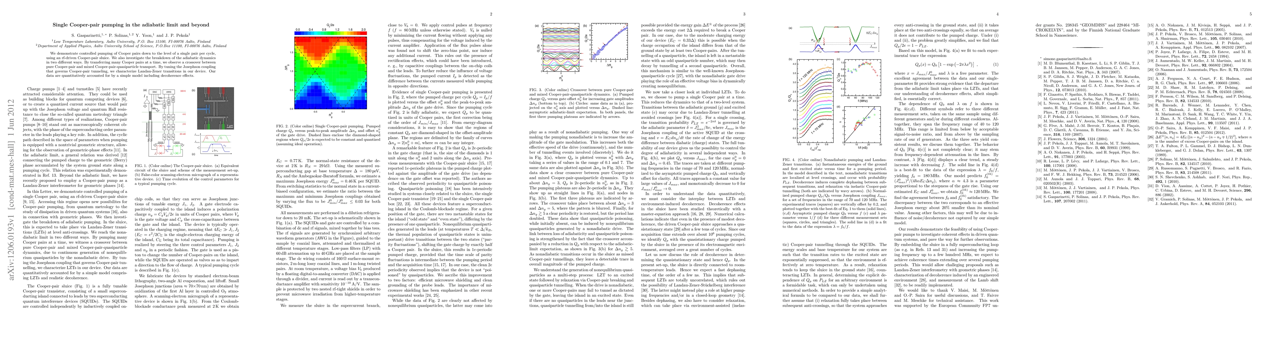 We demonstrate controlled pumping of Cooper pairs down to the level of a single pair per cycle, using an rf-driven Cooper-pair sluice. We also investigate the breakdown of the adiabatic dynamics in two different ways. By transferring many Cooper pairs at a time, we observe a crossover between pure Cooper-pair and mixed Cooper-pair-quasiparticle transport. By tuning the Josephson coupling that governs Cooper-pair tunneling, we characterize Landau-Zener transitions in our device. Our data are quantitatively accounted for by a simple model including decoherence effects.