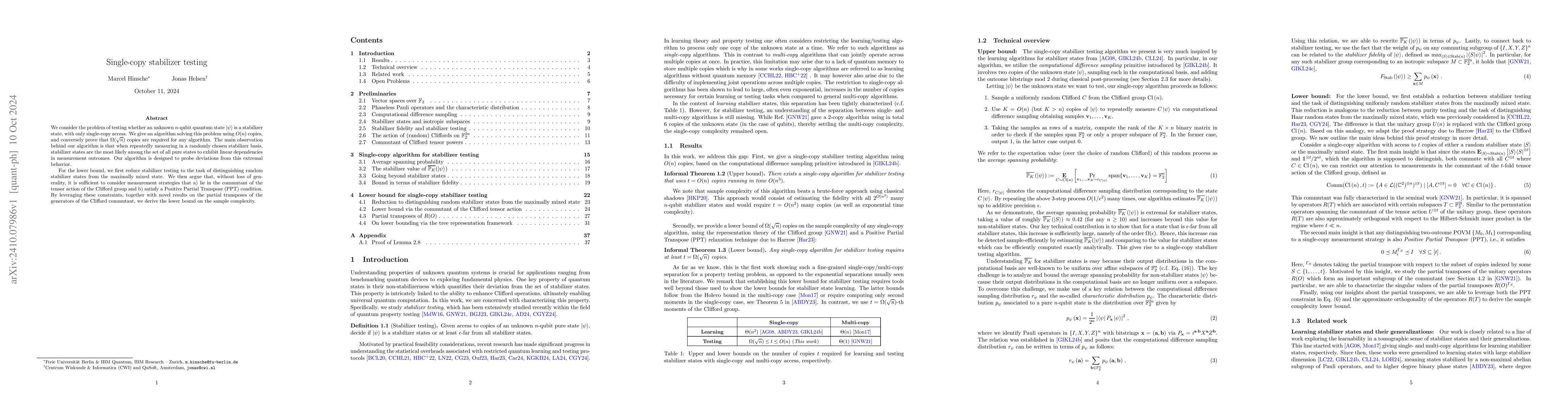 This paper presents an algorithm for testing if an unknown quantum state is a stabilizer state using only single-copy access, requiring $O(n)$ copies, and proves that $\Omega(\sqrt{n})$ copies are necessary. The algorithm leverages the linear dependencies in measurement outcomes of stabilizer states when measured in random stabilizer bases. For the lower bound, it reduces stabilizer testing to distinguishing random stabilizer states from maximally mixed states, establishing sample complexity constraints.