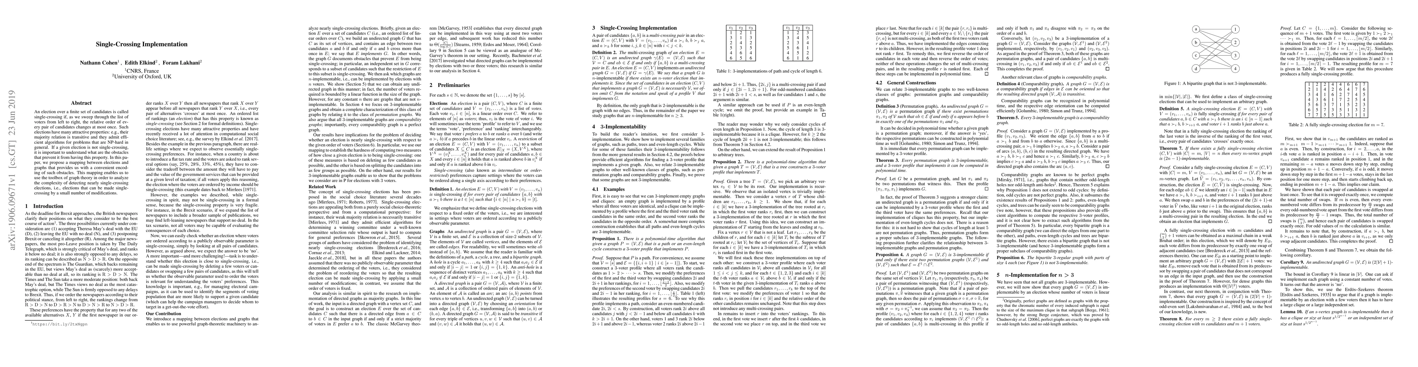 This paper explores single-crossing elections, where the relative order of candidates changes at most once when voters are considered sequentially. It proposes a graph-theoretic mapping to analyze obstacles preventing elections from being single-crossing and to determine the complexity of making nearly single-crossing elections through minor modifications.