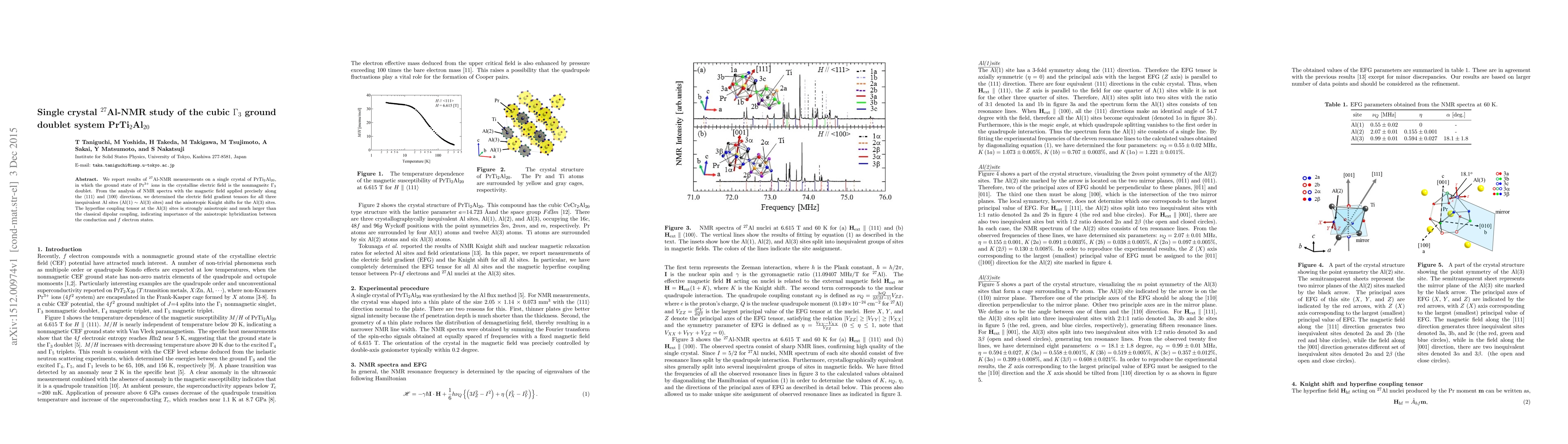 We report results of 27Al-NMR measurements on a single crystal of PrTi2Al20, in which the ground state of Pr3+ ions in the crystalline electric field is the nonmagnetic Gamma3 doublet. From the analysis of NMR spectra with the magnetic field applied precisely along the <111> and <100> directions, we determined the electric field gradient tensors for all three inequivalent Al sites (Al(1) ~ Al(3) sites) and the anisotropic Knight shifts for the Al(3) sites. The hyperfine coupling tensor at the Al(3) sites is strongly anisotropic and much larger than the classical dipolar coupling, indication importance of the anisotropic hybridization between the conduction and f electron states.