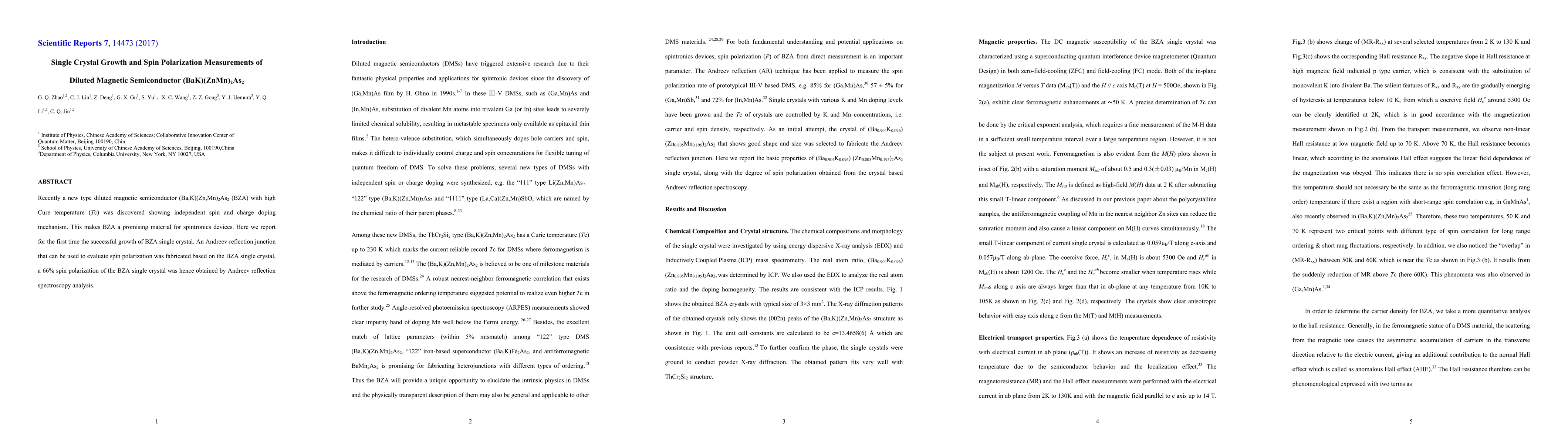 Recently a new type diluted magnetic semiconductor (BaK)(ZnMn)2As2 (BZA) with high Cure temperature (Tc) was discovered showing independent spin and charge doping mechanism. This makes BZA a promising material for spintronics devices. Here we report for the first time the successful growth of BZA single crystal. An Andreev reflection junction that can be used to evaluate spin polarization was fabricated based on the BZA single crystal, a 66% spin polarization of the BZA single crystal was hence obtained by Andreev reflection spectroscopy analysis.