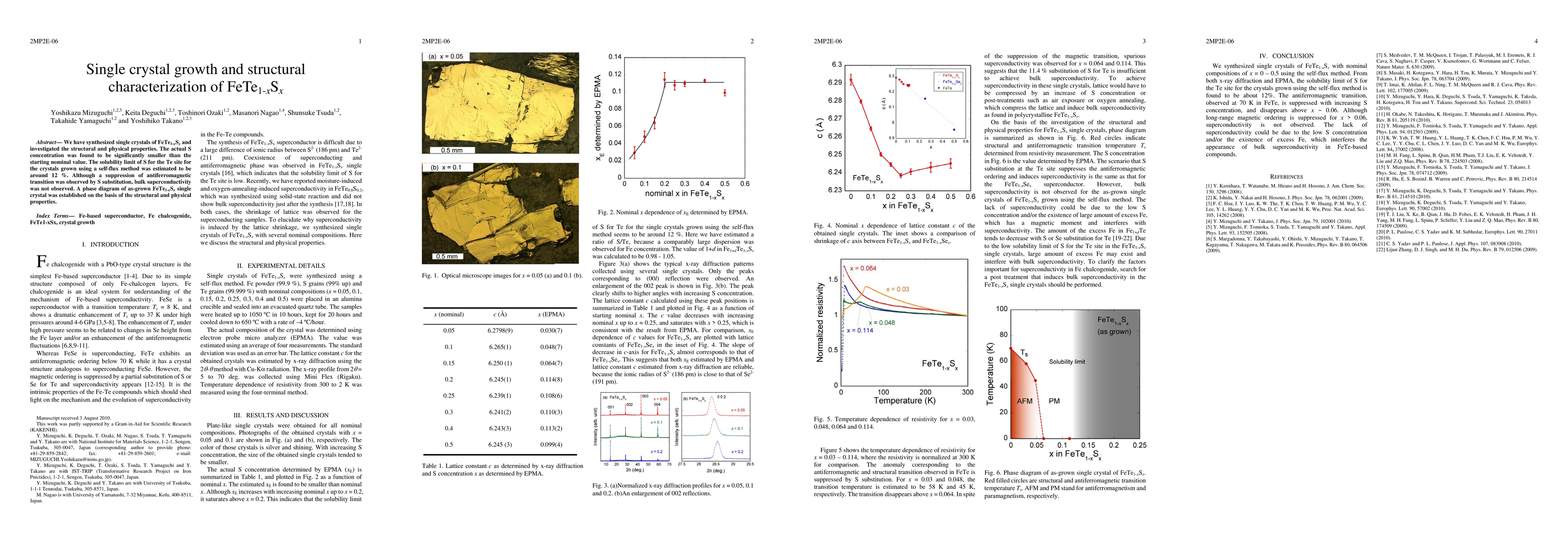 Single crystals of FeTe1-xSx were successfully grown, revealing a Te site S solubility of about 12%. While S substitution suppressed antiferromagnetic transitions, it did not induce bulk superconductivity. A phase diagram was constructed based on structural and physical property analyses.