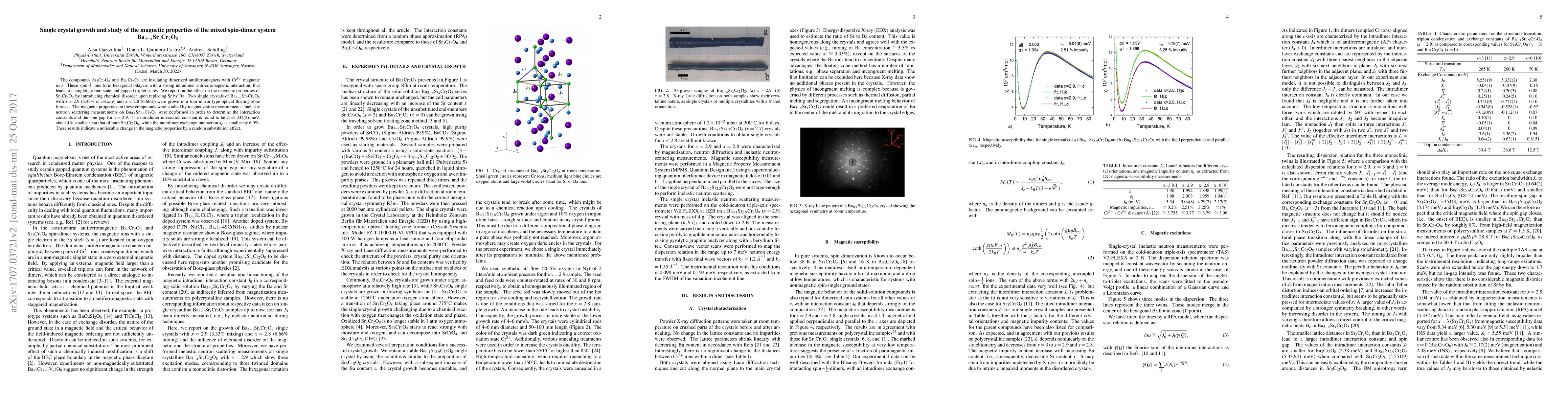 This paper investigates the magnetic properties of mixed spin-dimer systems Ba$_{3-x}$Sr$_{x}$Cr$_{2}$O$_{8}$ grown as single crystals. The study reveals that replacing Sr with Ba alters the intradimer and interdimer exchange interactions, leading to a noticeable change in the magnetic properties, as evidenced by magnetization and neutron scattering measurements.