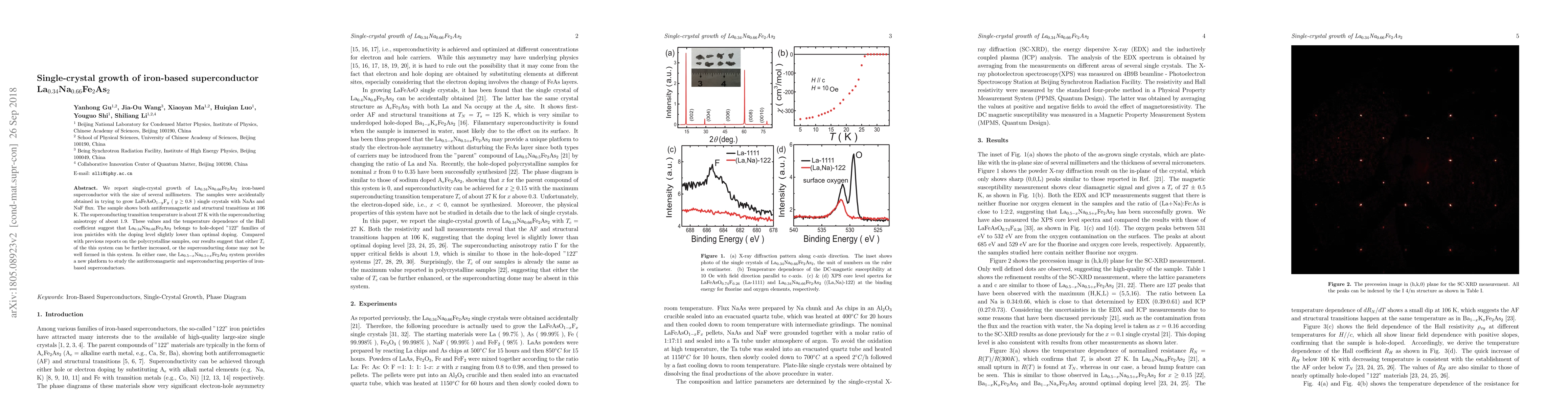 This paper reports the successful growth of single-crystal La$_{0.34}$Na$_{0.66}$Fe$_2$As$_2$, an iron-based superconductor, which shows antiferromagnetic and structural transitions at 106 K and a superconducting transition temperature of 27 K. The study provides insights into the material's potential for enhanced superconductivity and offers a new platform for exploring its properties.