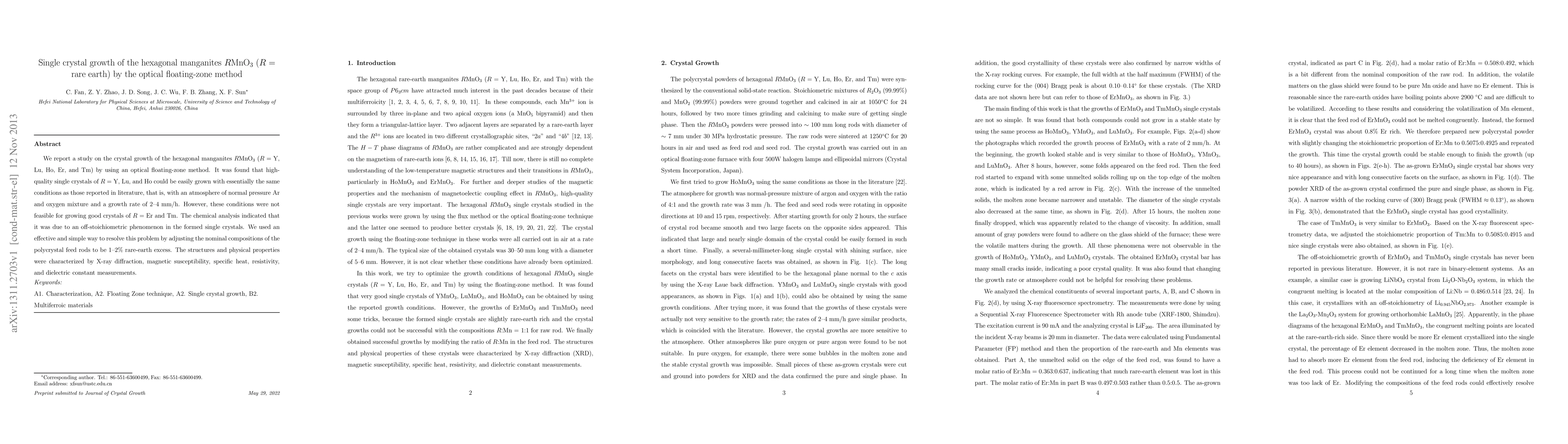 Optimization of growth conditions for ErMnO3 single crystals, including stoichiometry and atmosphere control