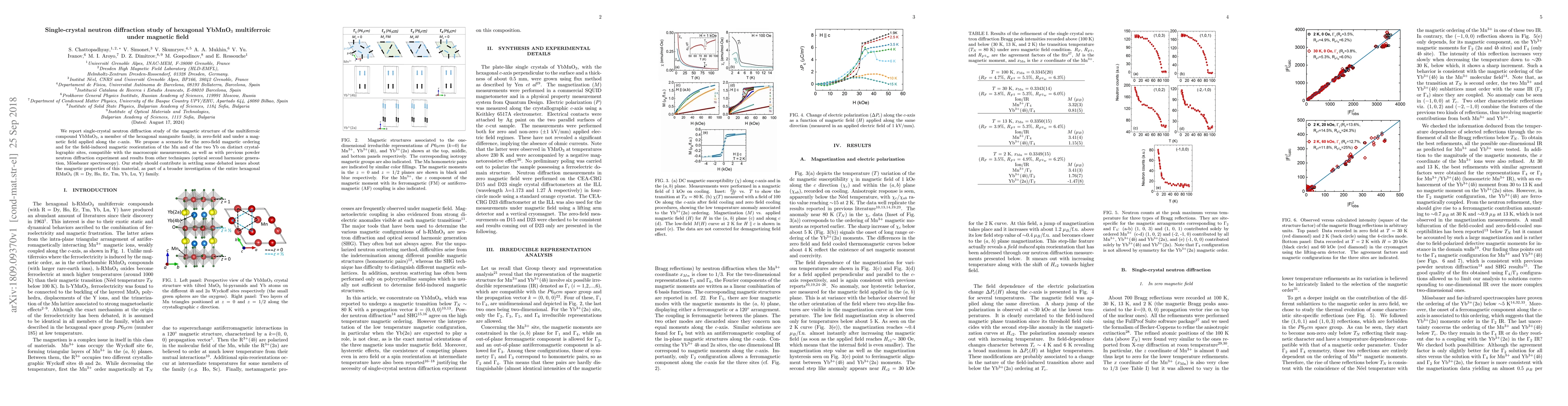 This study uses single-crystal neutron diffraction to investigate the magnetic structure of the hexagonal multiferroic YbMnO$_3$ under various magnetic fields, proposing a detailed magnetic ordering scenario that aligns with previous experimental results and macroscopic measurements. The findings aim to resolve some uncertainties regarding the magnetic properties of YbMnO$_3$ and its related hexagonal manganites.