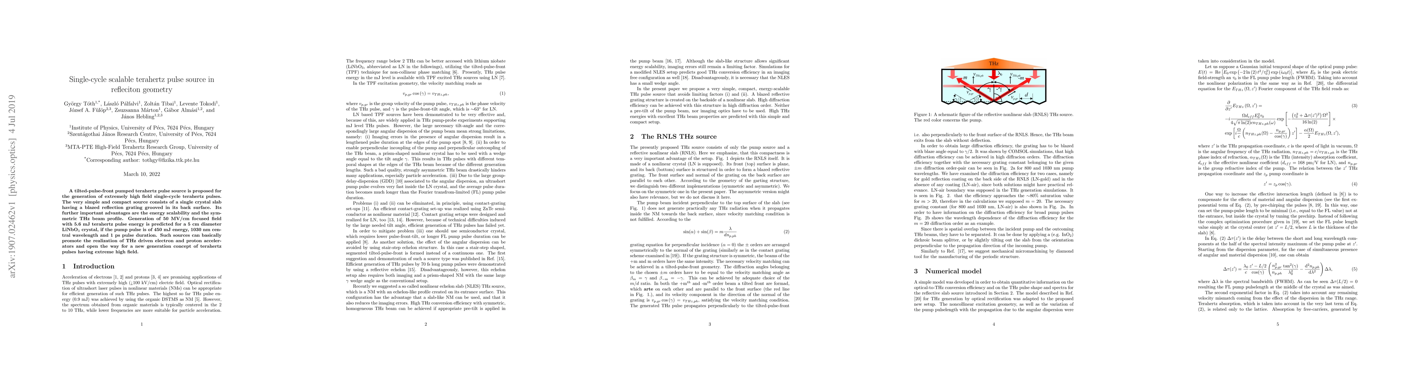 This paper proposes a compact, scalable, and high-field single-cycle terahertz pulse source using a tilted-pulse-front pumped crystal with a blazed reflection grating. Predicted generation of a 50 MV/cm focused field with 5.6 mJ energy could advance THz-driven accelerators and next-generation terahertz pulse technology.