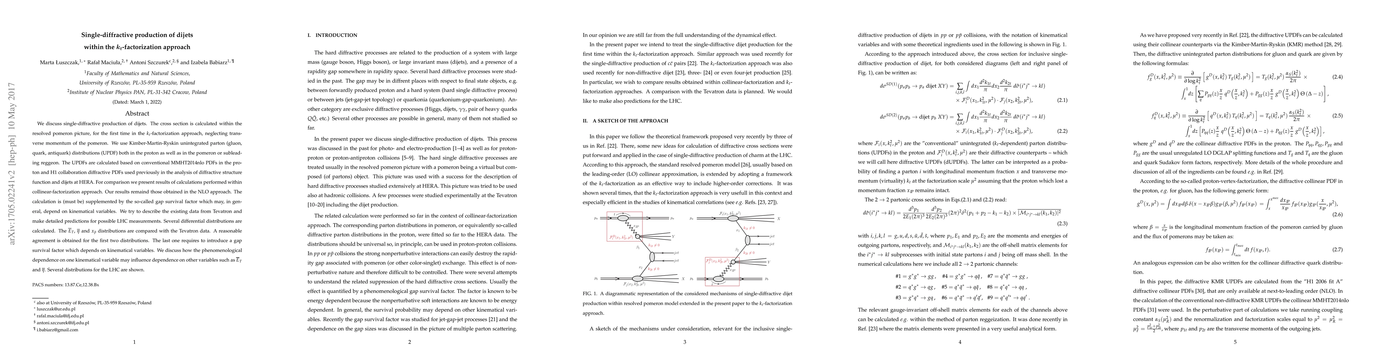 This paper calculates the single-diffractive production of dijets in the $k_t$-factorization approach, using Kimber-Martin-Ryskin unintegrated parton distributions and comparing results with the collinear-factorization approach. It shows reasonable agreement with Tevatron data for $\overline{E}_T$ and $\overline{\eta}$ distributions, but requires a gap survival factor for $x_{\bar p}$.