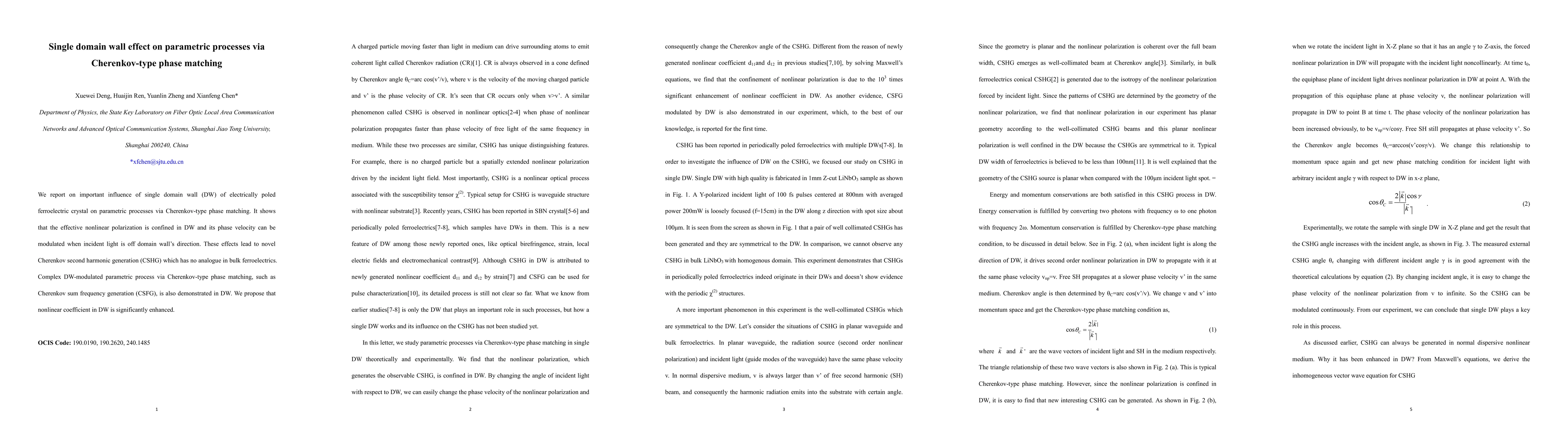 Researchers found that a single domain wall in an electrically poled ferroelectric crystal can enhance nonlinear effects leading to novel parametric processes like Cherenkov second harmonic generation.