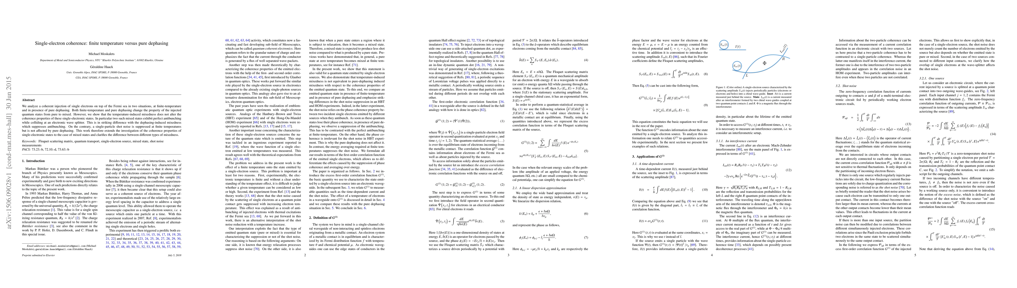 This paper investigates the coherence properties of single electrons under finite temperature and pure dephasing conditions. It finds that while both conditions convert pure states to mixed states, only pure dephasing suppresses antibunching, whereas temperature-induced mixedness does not affect coherence.