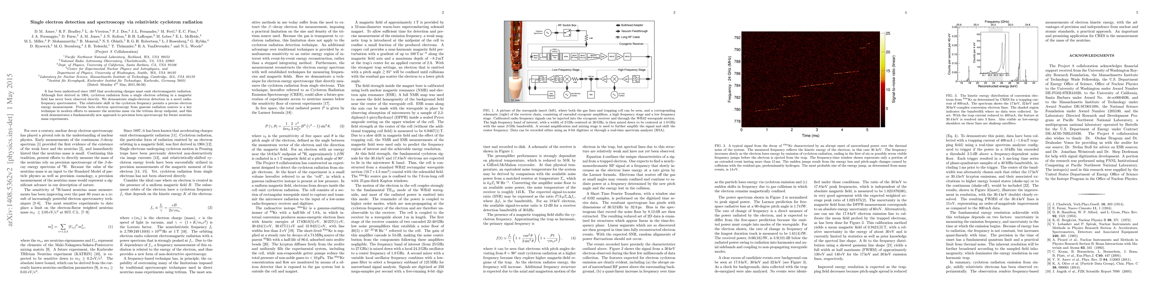 This paper demonstrates the direct detection of single-electron cyclotron radiation using a novel radiofrequency spectrometer, enabling precise electron energy measurements via relativistic shifts in the cyclotron frequency. This breakthrough technique holds promise for enhancing beta electron spectroscopy, crucial for future neutrino mass experiments.
