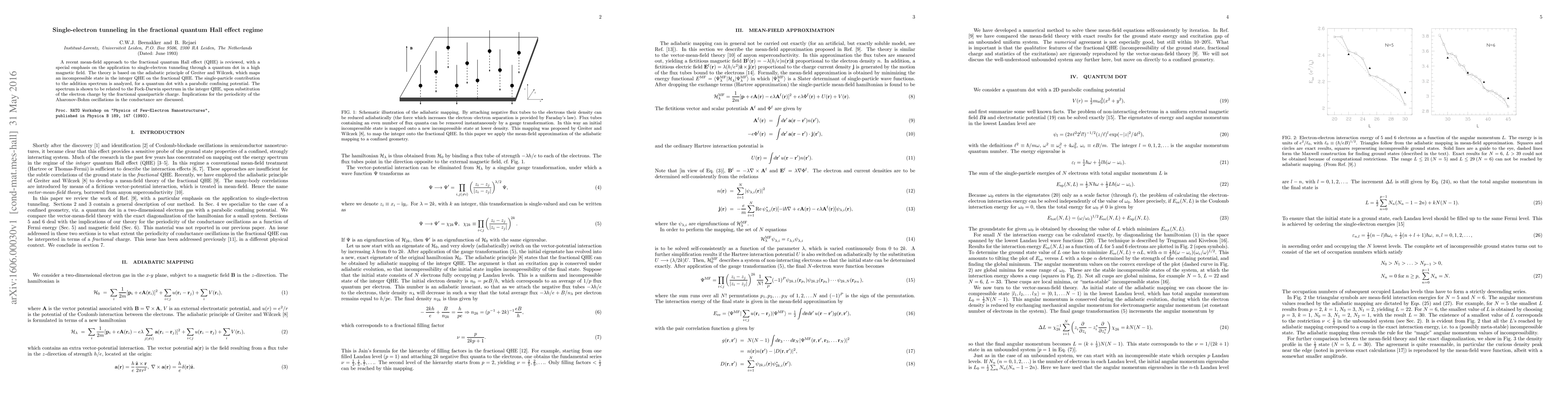 This paper reviews a mean-field approach to the fractional quantum Hall effect, focusing on single-electron tunneling through a quantum dot. It applies the adiabatic principle to relate the fractional QHE to the integer QHE, showing the addition spectrum's similarity to the Fock-Darwin spectrum with quasiparticle charge substitution, and discusses implications for the periodicity of Aharonov-Bohm oscillations.