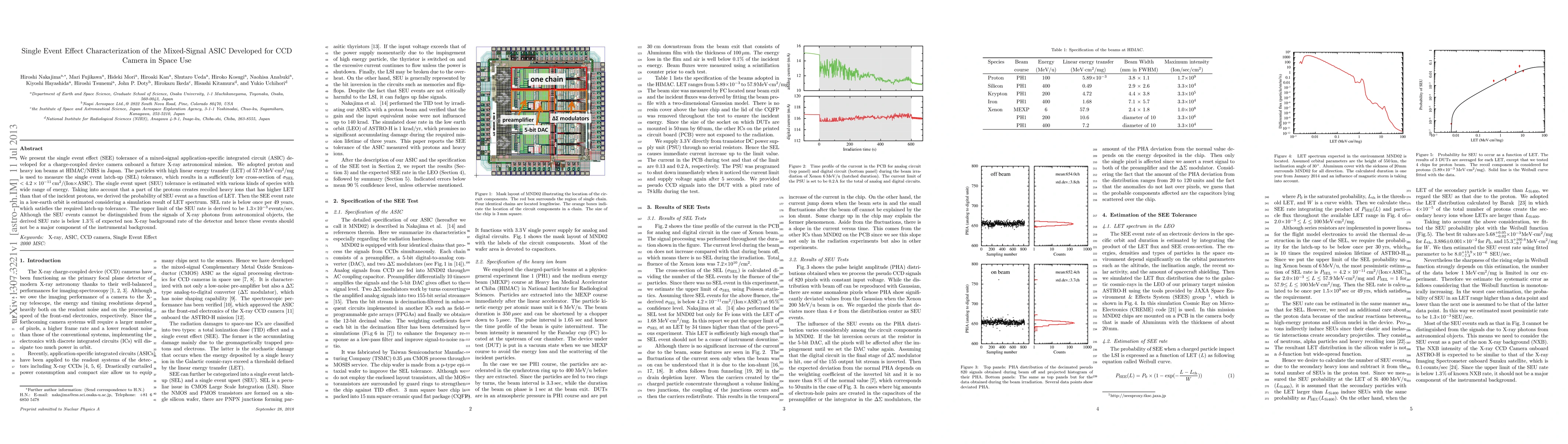 This paper characterizes the single event effect (SEE) tolerance of a mixed-signal ASIC designed for a CCD camera in space, finding a low SEL rate of < 4.2x10^{-11} cm^{2}/(IonxASIC) and an SEU rate of 1.3x10^{-3} events/sec, which is below 1.3% of the expected non-X-ray background rate, ensuring minimal impact on detector performance.