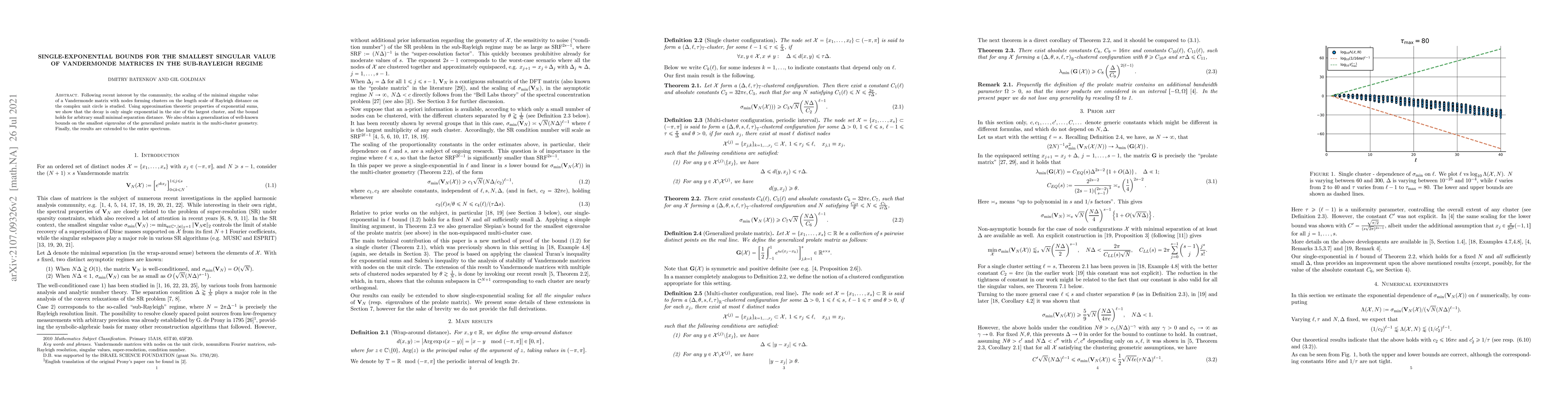 Following recent interest by the community, the scaling of the minimal singular value of a Vandermonde matrix with nodes forming clusters on the length scale of Rayleigh distance on the complex unit circle is studied. Using approximation theoretic properties of exponential sums, we show that the decay is only single exponential in the size of the largest cluster, and the bound holds for arbitrary small minimal separation distance. We also obtain a generalization of well-known bounds on the smallest eigenvalue of the generalized prolate matrix in the multi-cluster geometry. Finally, the results are extended to the entire spectrum.