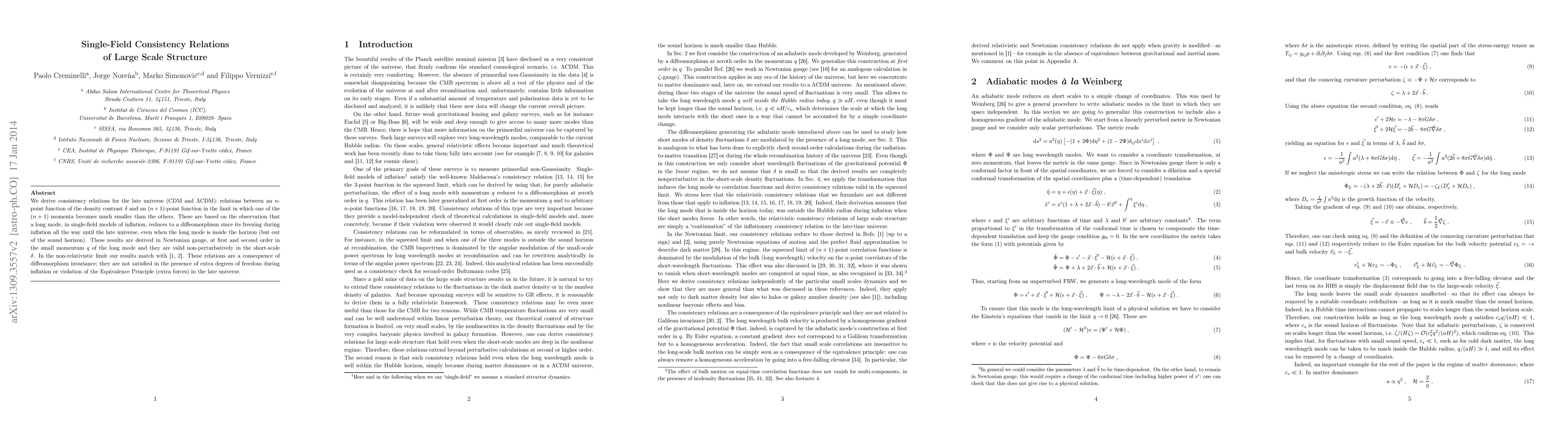 This paper derives consistency relations for large scale structure in CDM and ΛCDM models, linking n-point functions of density contrast to (n+1)-point functions when one momentum is much smaller. These relations arise from the diffeomorphism invariance in single-field inflation models and hold non-perturbatively for short-scale density fluctuations.