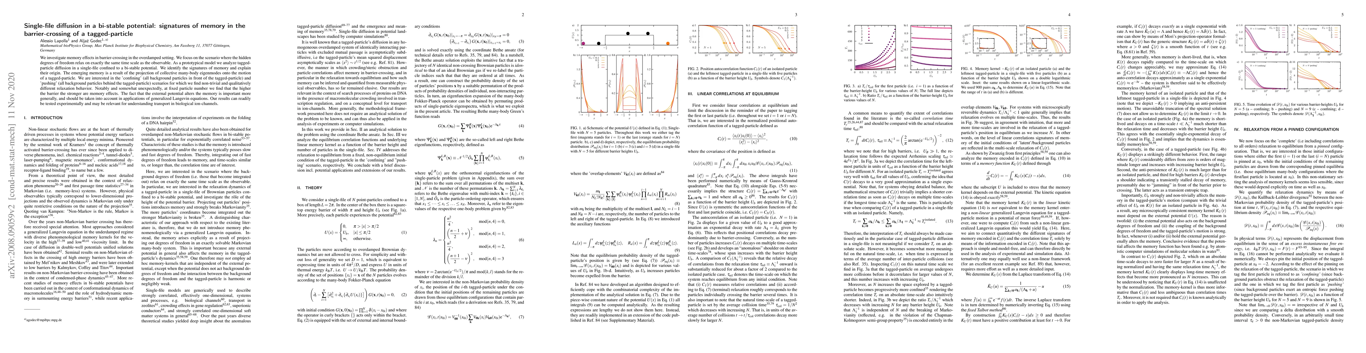 We investigate memory effects in barrier-crossing in the overdamped setting. We focus on the scenario where the hidden degrees of freedom relax on exactly the same time scale as the observable. As a prototypical model, we analyze tagged-particle diffusion in a single file confined to a bi-stable potential. We identify the signatures of memory and explain their origin. The emerging memory is a result of the projection of collective many-body eigenmodes onto the motion of a tagged-particle. We are interested in the "confining" (all background particles in front of the tagged-particle) and "pushing" (all background particles behind the tagged-particle) scenarios for which we find non-trivial and qualitatively different relaxation behaviors. Notably and somewhat unexpectedly, at a fixed particle number, we find that the higher the barrier, the stronger the memory effects are. The fact that the external potential alters the memory is important more generally and should be taken into account in applications of generalized Langevin equations. Our results can readily be tested experimentally and may be relevant for understanding transport in biological ion-channels.