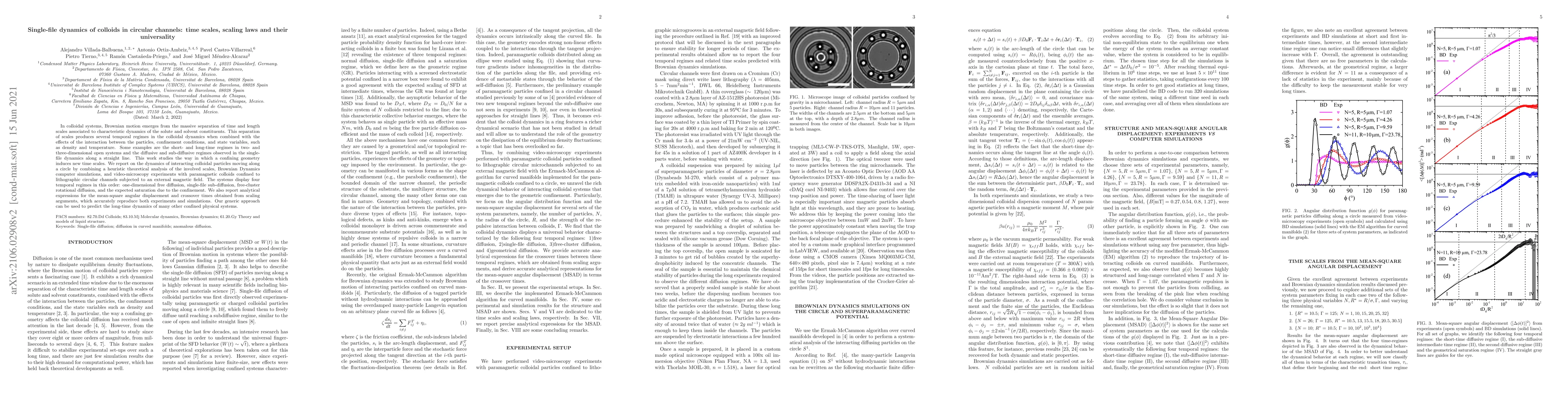 This research investigates the dynamics of interacting colloidal particles in circular channels, identifying four temporal regimes: free diffusion, single-file sub-diffusion, free-cluster rotational diffusion, and confinement saturation. Analytical expressions and simulations accurately predict the mean-square angular displacement and crossover times, providing a universal approach for understanding confined colloidal systems.