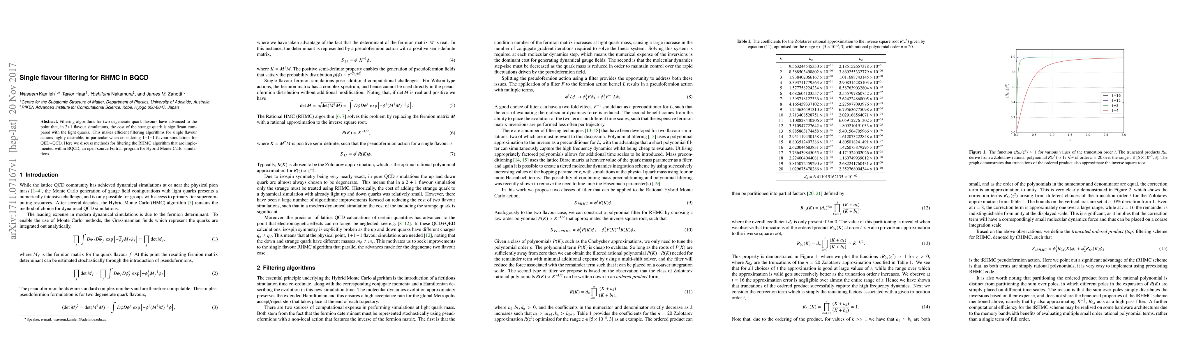 Filtering algorithms for two degenerate quark flavours have advanced to the point that, in 2+1 flavour simulations, the cost of the strange quark is significant compared with the light quarks. This makes efficient filtering algorithms for single flavour actions highly desirable, in particular when considering 1+1+1 flavour simulations for QED+QCD. Here we discuss methods for filtering the RHMC algorithm that are implemented within BQCD, an open-source Fortran program for Hybrid Monte Carlo simulations.
