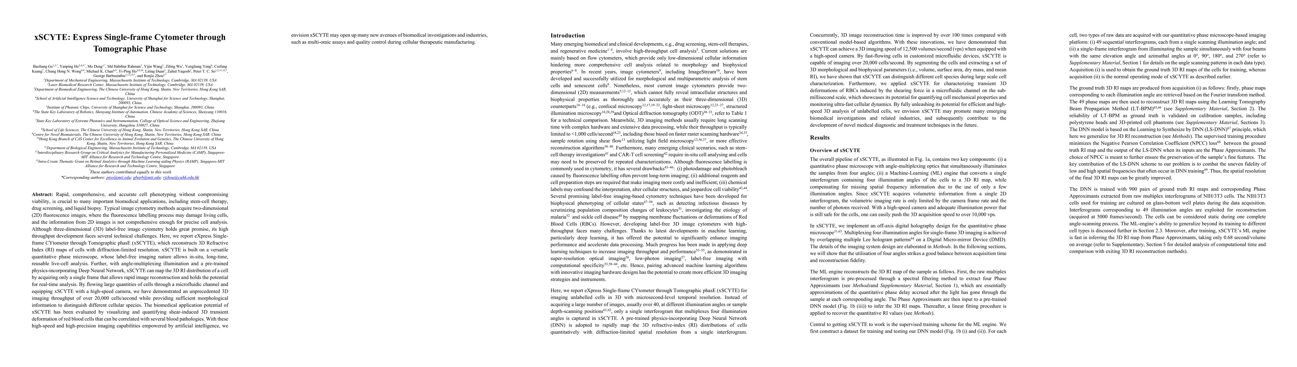 Three-dimensional (3D) image cytometers may significantly improve the cell analysis accuracy to facilitate biological discoveries and clinical diagnosis, but their development is curbed by the low imaging throughput. Here we report SIngle-frame LAbel-free Cell Tomography (SILACT) with diffraction-limited resolution and unprecedented imaging speed of over 10,000 volumes/second. SILACT is built on a unique interferometric microscope with angle-multiplexing illumination and a pre-trained physics-incorporating Deep Neural Network for efficient 3D Refractive Index (RI) reconstruction, from which 3D morphological and biophysical parameters of cells are extracted. With microfluidics and a high-speed camera, SILACT is capable of imaging over 20,000 cells/second and distinguishing different cell species during rapid measurements of large cell quantities, as well as visualizing shear-induced 3D transient deformation of red blood cells on a sub-millisecond scale.